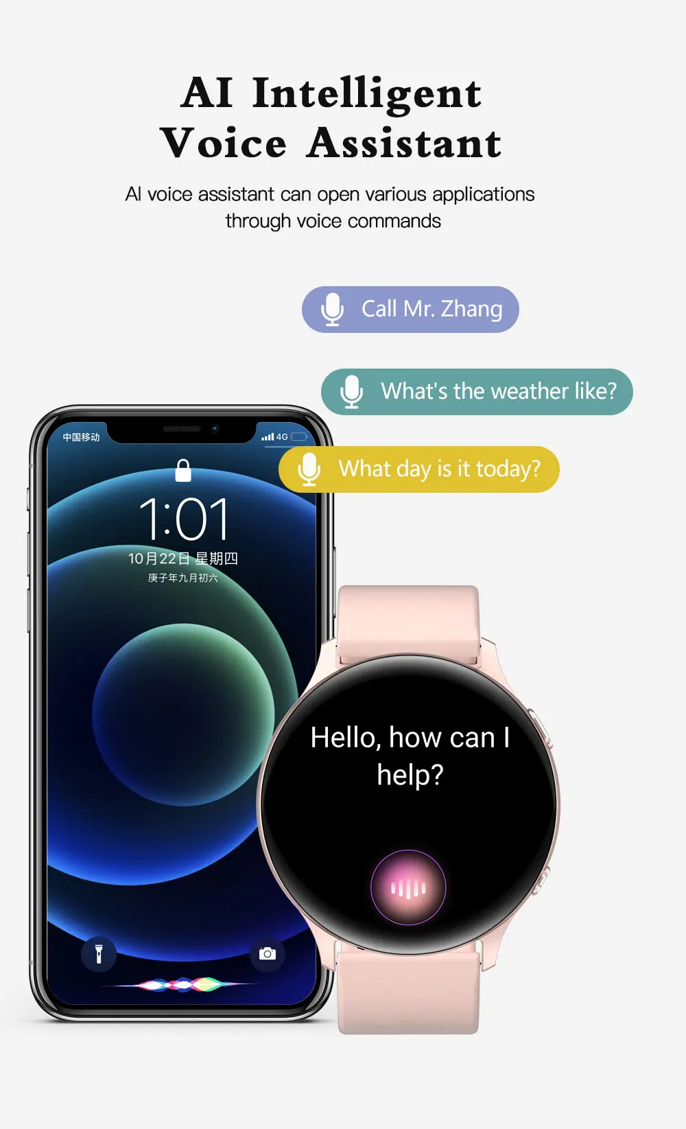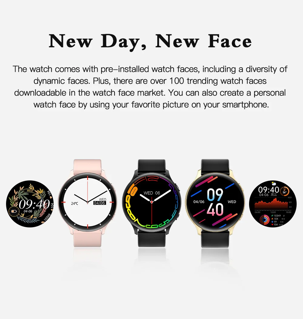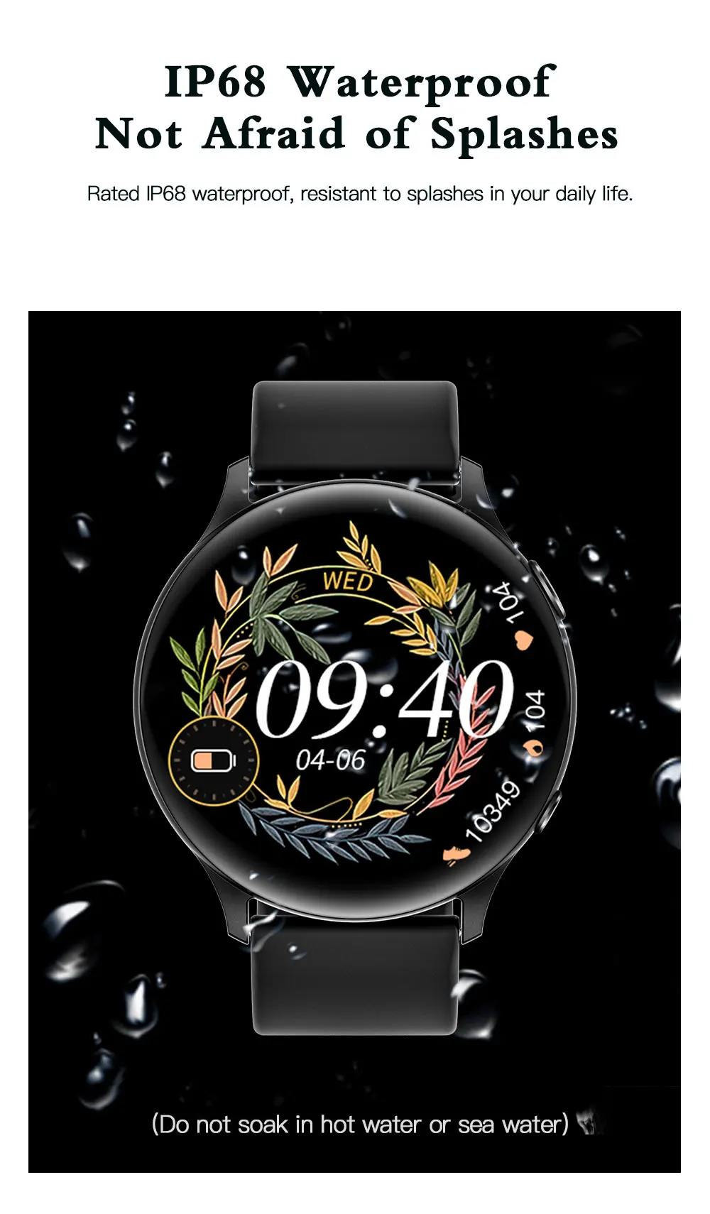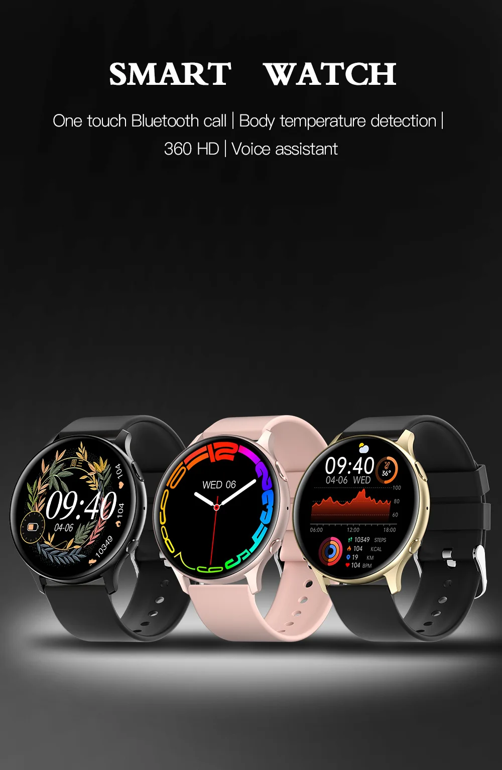 360 high-definition display, body temperature measurement, Bluetooth calling, Bluetooth music, AI voice assistant, real-time monitoring of health housekeepers, multiple main menus, massive dials, weather forecast, 20 sports modes
