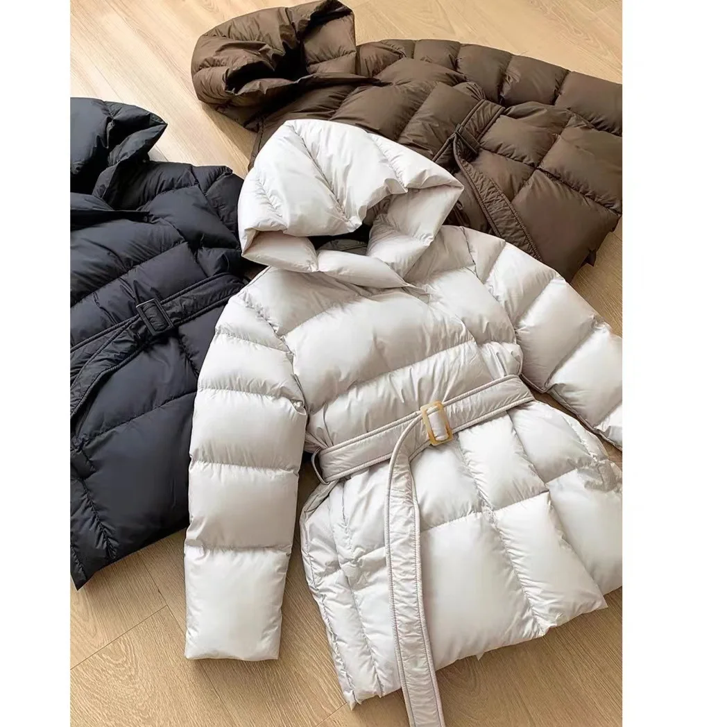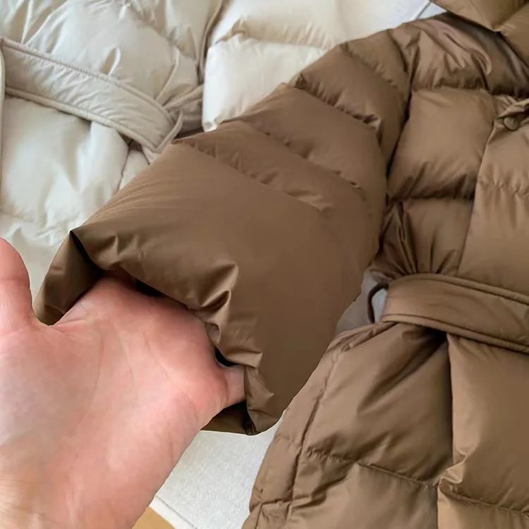 Loehsao waist shrinking thin down jacket women's short white duck down thickened belt fashion temperament winter 2022