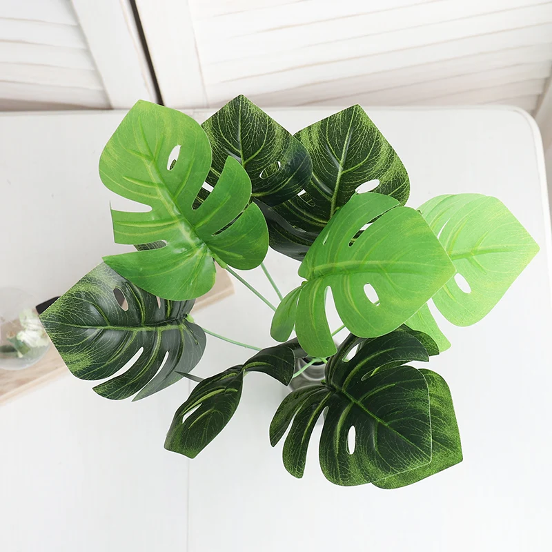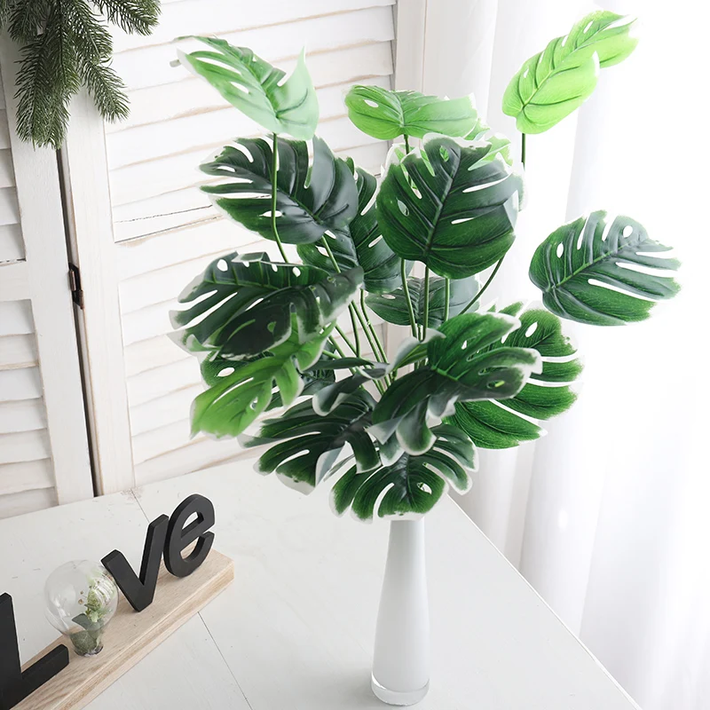 Luxury Artificial Plant Green Large Turtle Leaf Fake Palm Plant Party Home Living Room Balcony for Table Pot Bonsai Decoration