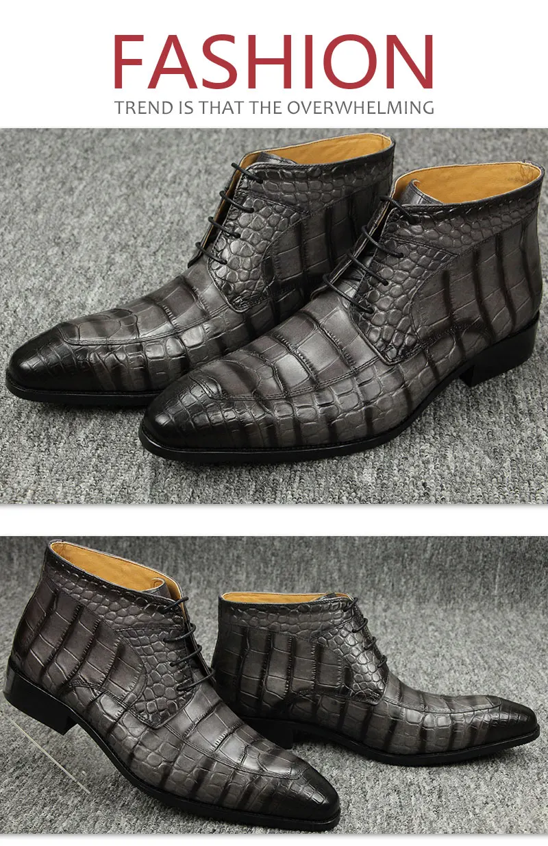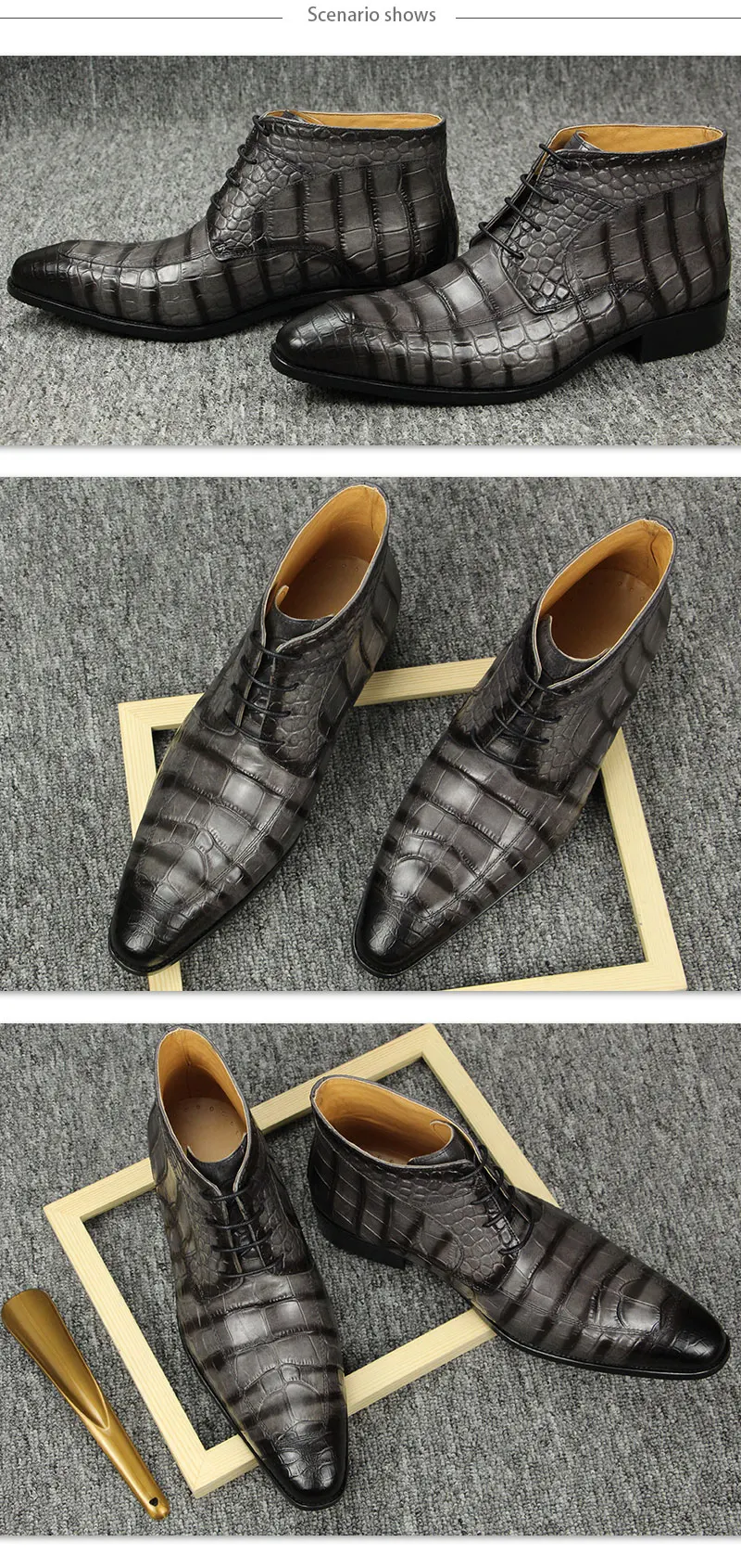 Luxury Boots Genuine Leather Men’s Ankle Dress Boots High Grade  Boots Mens Leather Casual Lace up Driving Walking Ankle Boots