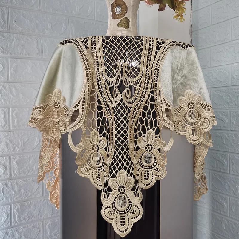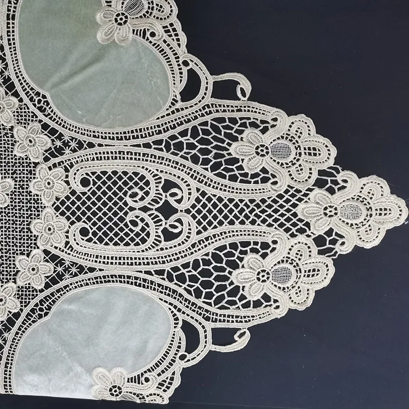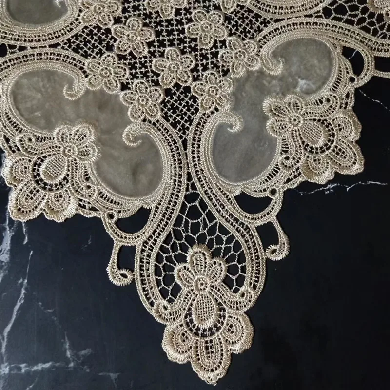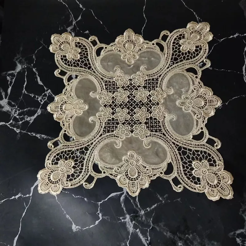 Luxury European Crochet Stitching Velvet Fabric Square Tablecloth Table Mat Set Tableware Oven Air Conditioner Dust Cover Cloth