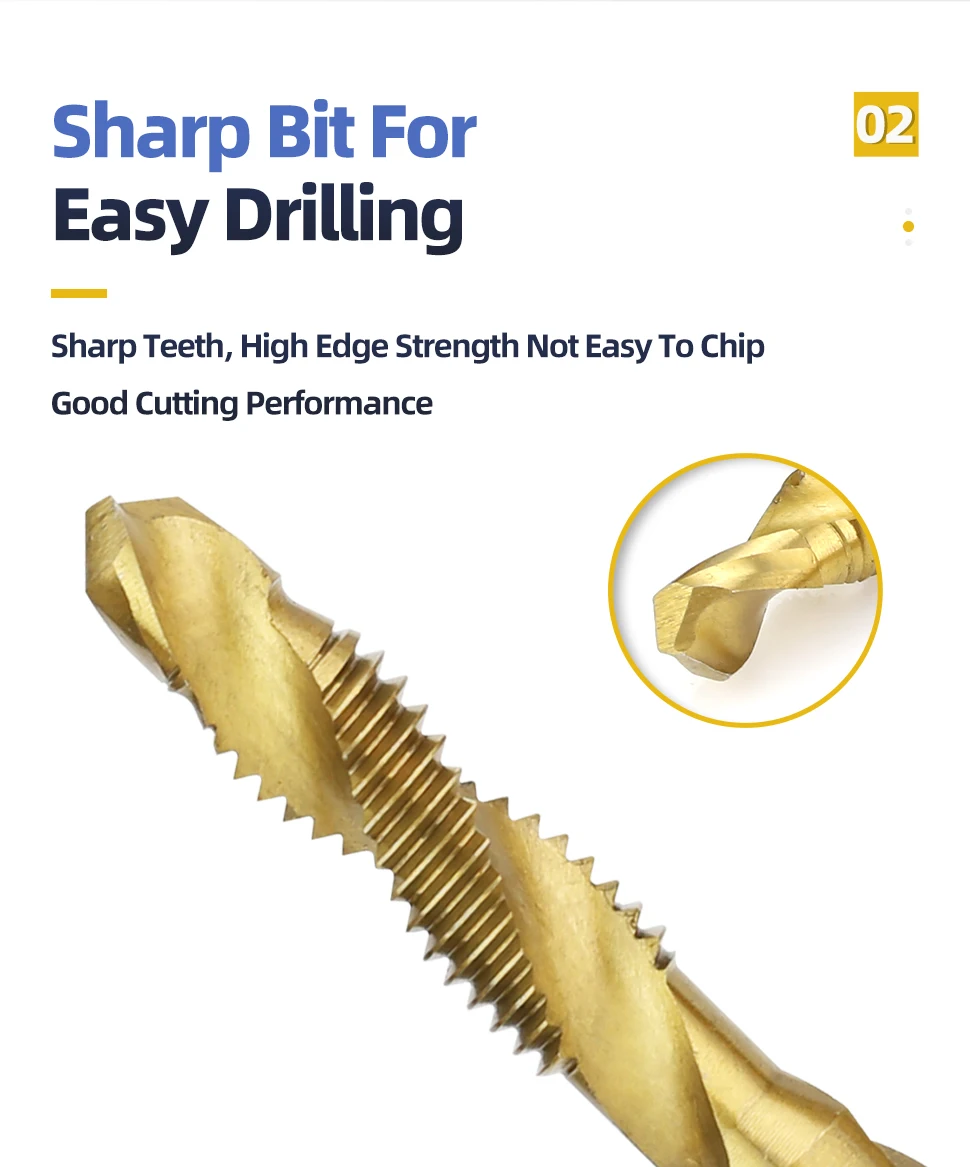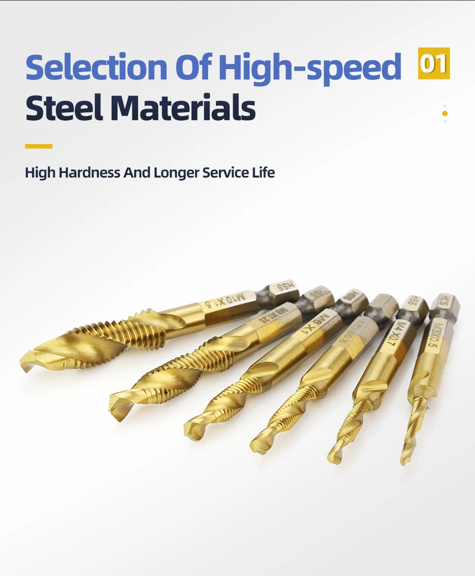 M3-M10 Screw Tap Drill Bits Hss Taps Countersink Deburr Set Metric Combination Bit High Speed Steel Tap Compound Drill Bit