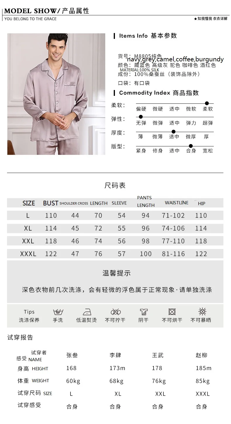 M8805 Silk Pajamas Spring and Summer long sleeves Man Pajamas two piece sets 100% Silk Noble Men’s Home Clothes Suit