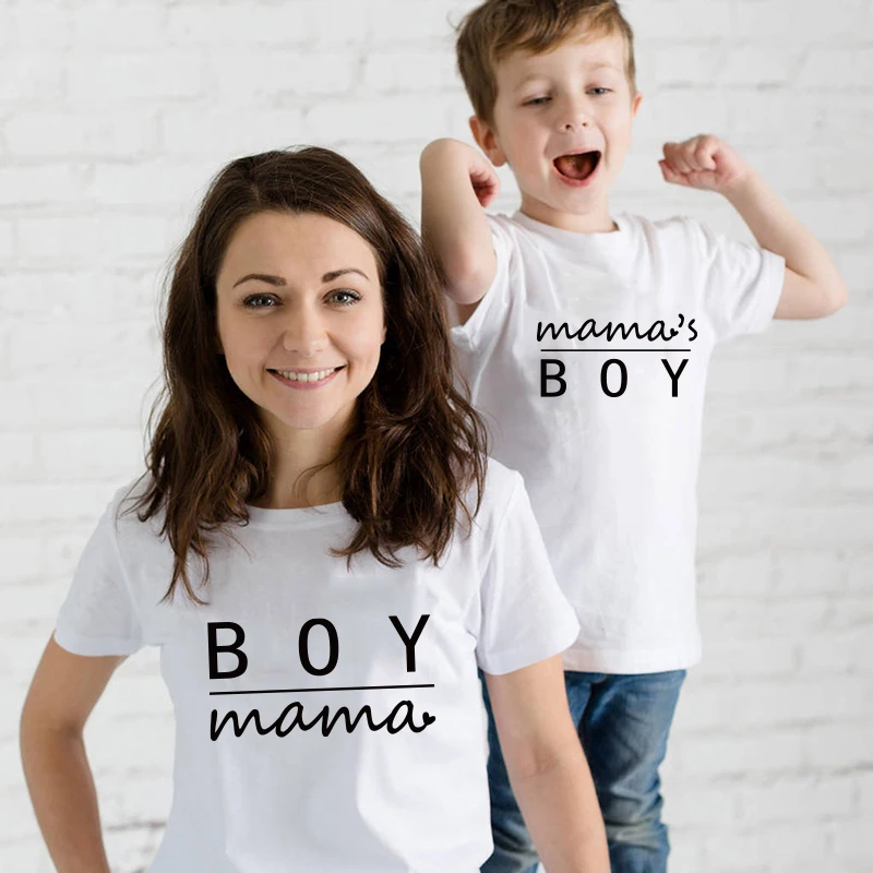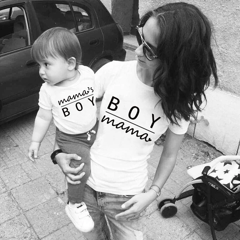 MAMA'S BOY AND BOY MAMA Family Tshirts family matching outfits mommy and me clothes Cotton Family Look mother kids Boys T shirt