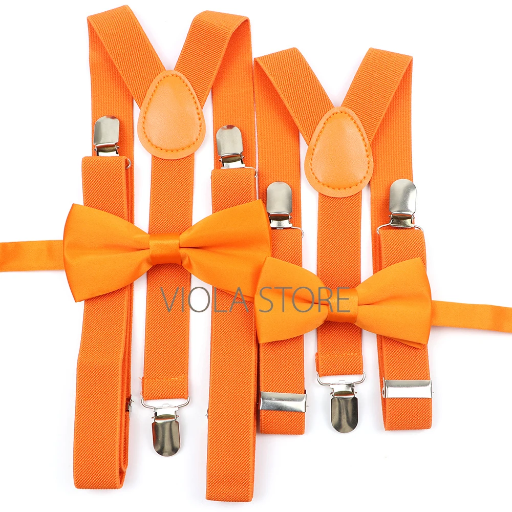 Matte Parent-Child Soild Colorful Suspenders Bowtie Sets Y-Back Braces Nice Wedding Butterfly Belt Bow Tie Adjustable Accessory