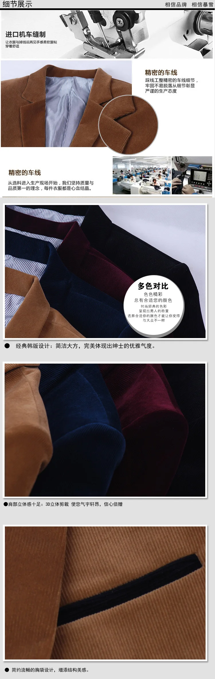Men Corduroy Suits Jackets Male Smart Casual Dress Suits High Quality Blazers Slim Single-breasted Suits Jackets And Coats 4XL