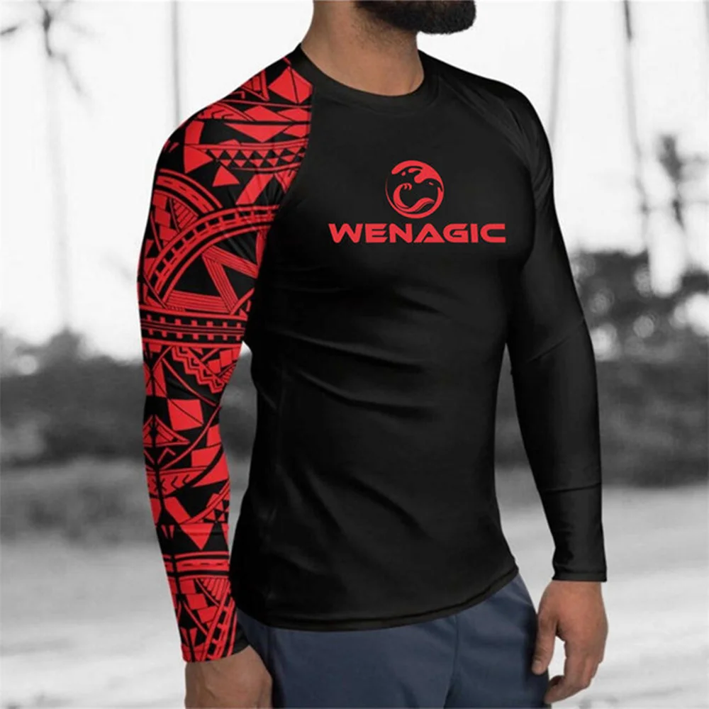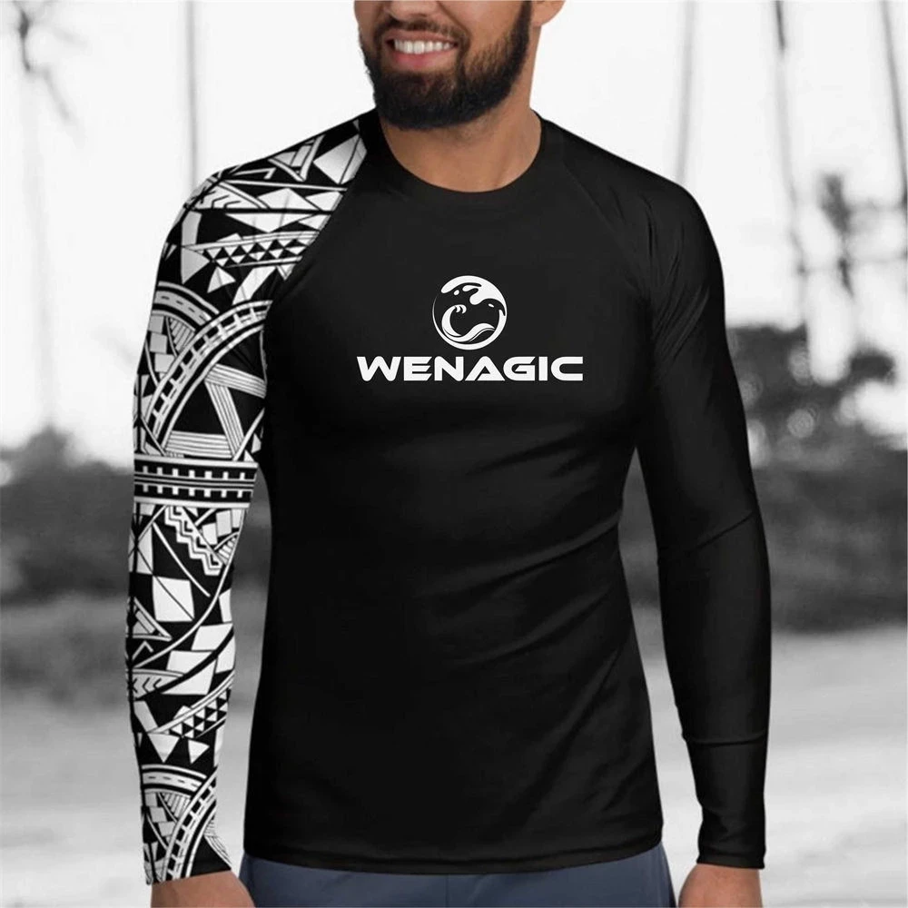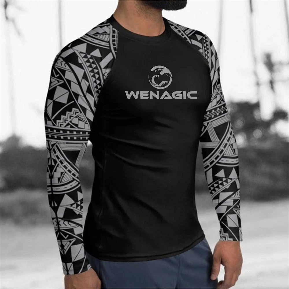 Men Swimsuit T-shirt Beach UV Protection Swimwear Rash Guard Long Sleeve Surfing Diving Swimsuit Surf T-shirt Rashguar UPF 50