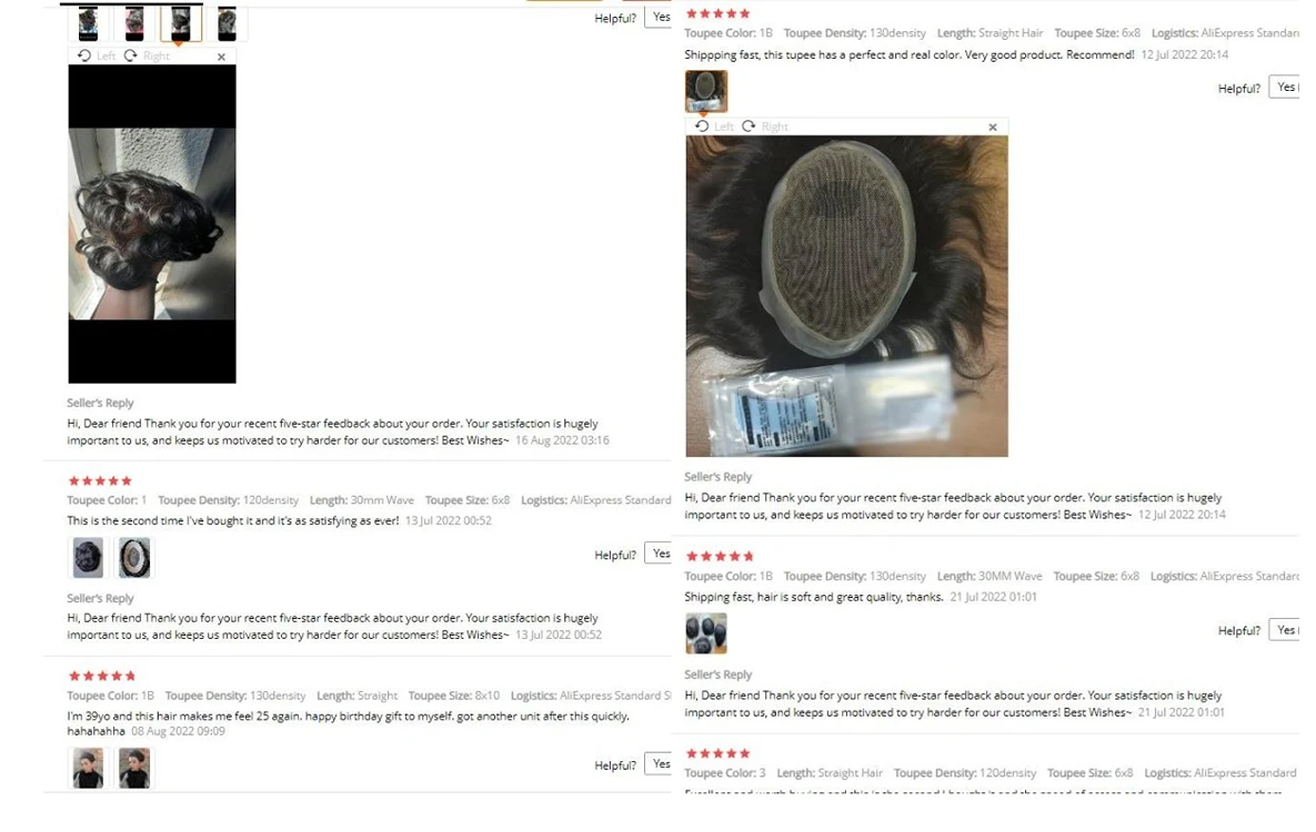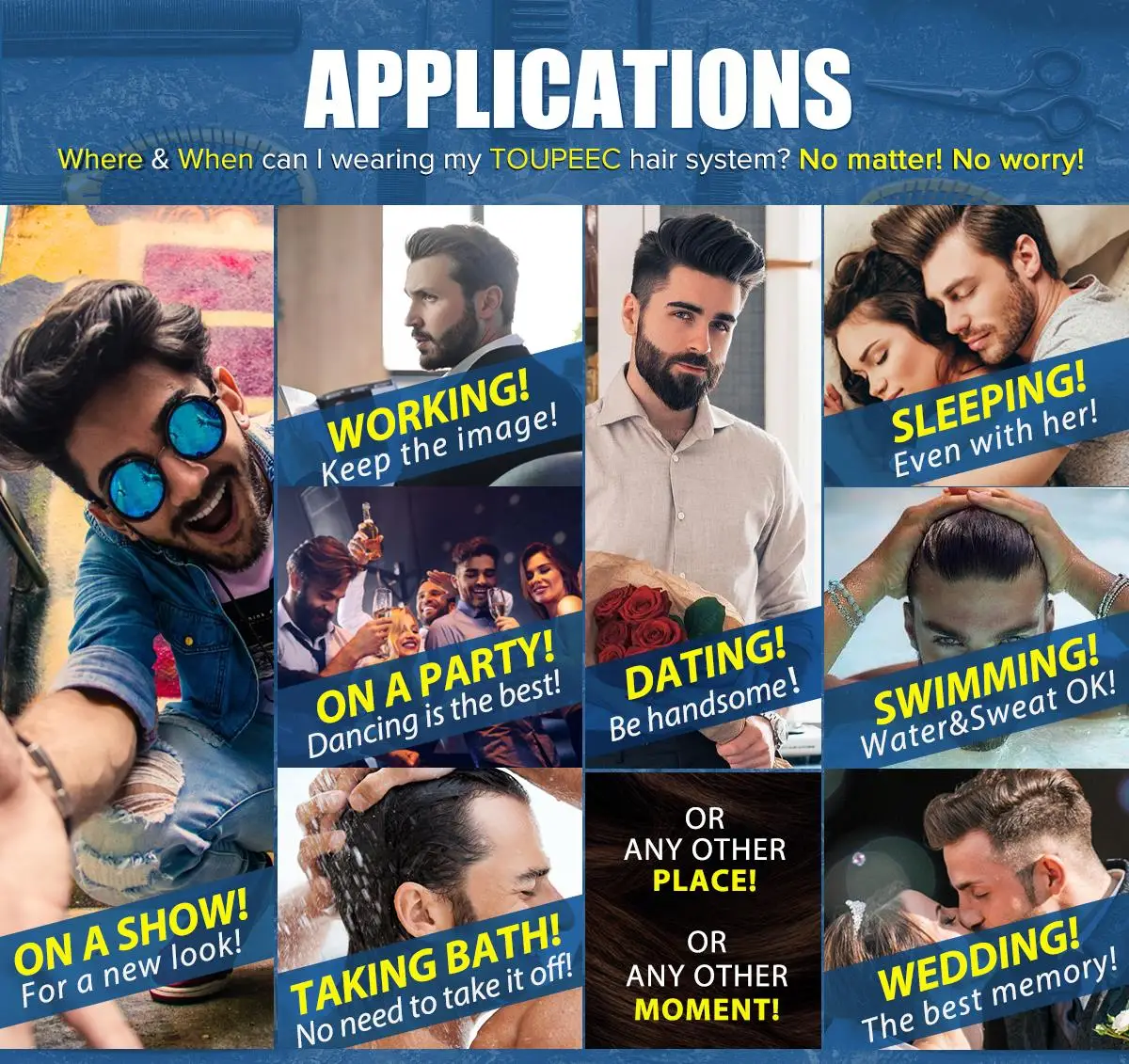 After receiving the hair toupee for men, if you find any problems or are not satisfied with the men toupee hair, please do not cut, shape, color or clean the hair toupee. Please contact us directly. We will give you a perfect solution. Please make sure that the men hairpiece has not been cut, shaped, washed, colored or used. We guarantee that it will be returned within 30 days. If you have asked us to make any changes to the hair replacement system before shipment, such as custom order, the product cannot be refunded.