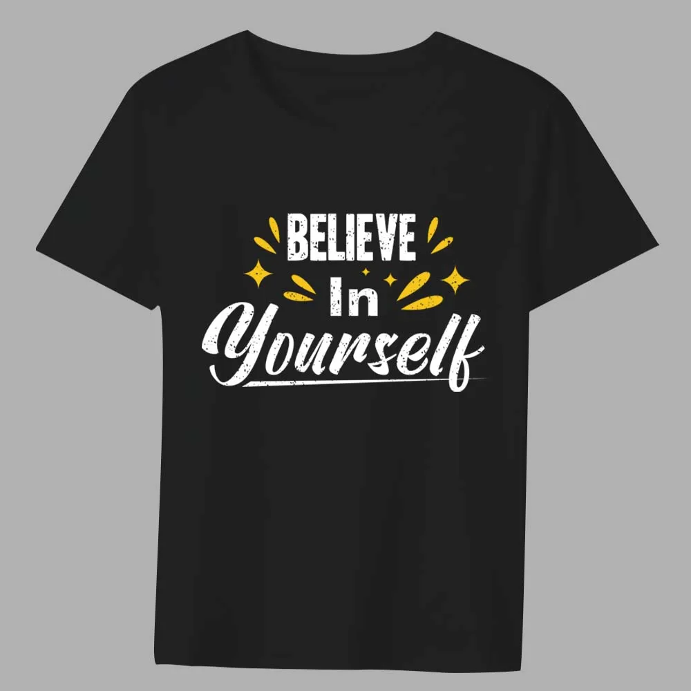 Men's Classic T-shirt Casual O-neck Inspirational Youth Phrase Printing Pattern Series Commuter All-match Breathable Black Shirt