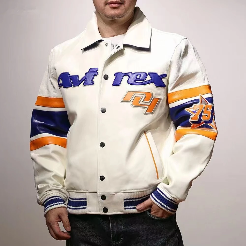 Men's France Sheep Leather Baseball Jacket USAF Flight Plus-size Thickness 1.5mm Sheepskin Autumn Winter Warm Uniform Coat