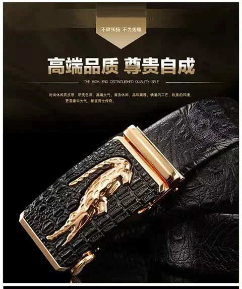 Men's Genuine Leather Belt Luxury Crocodile Pattern Automatic Buckle Aristocrat Fashion Youth High Quality Male Business Strap