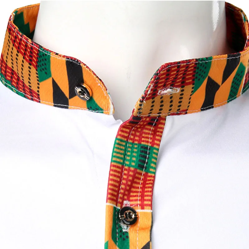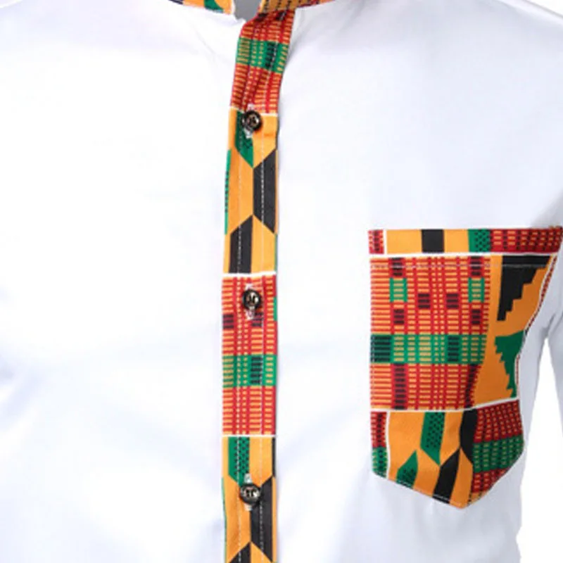Mens Shirt Dashiki African Print Patchwork Pocket Africaine Shirt Men Ankara Style Long Sleeve Design Casual Wedding Dress Shirt