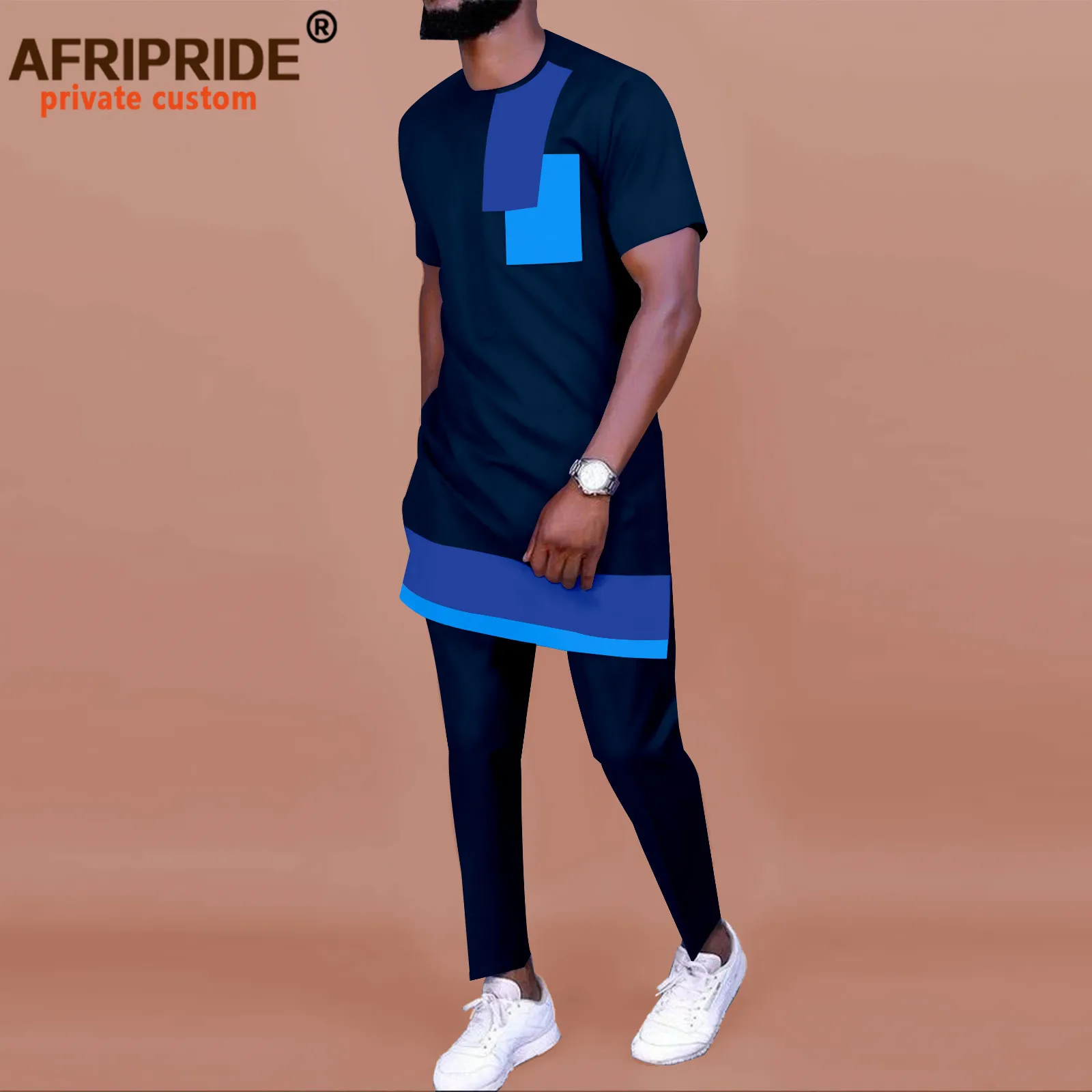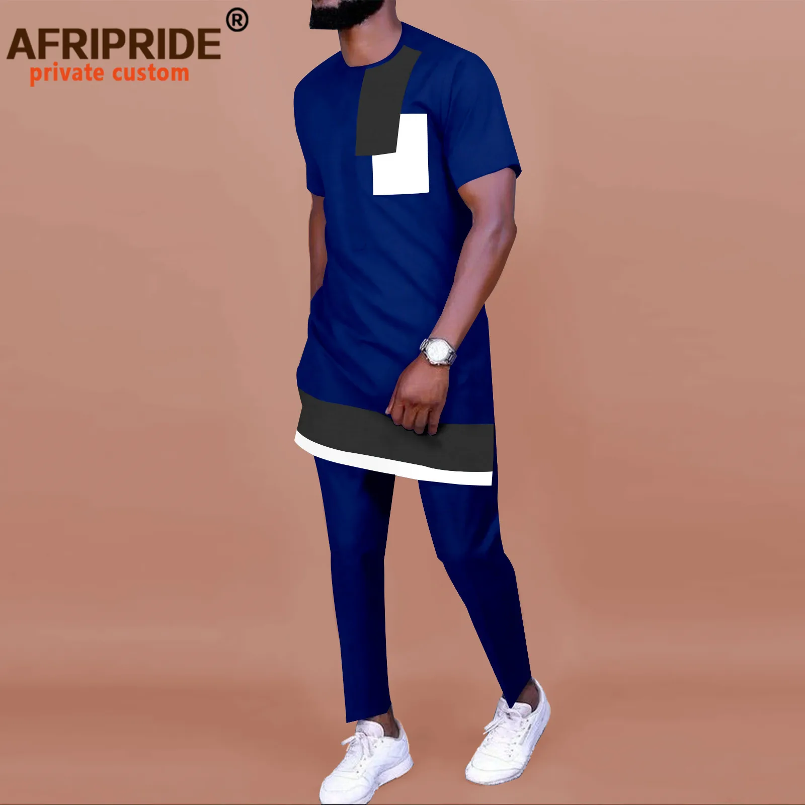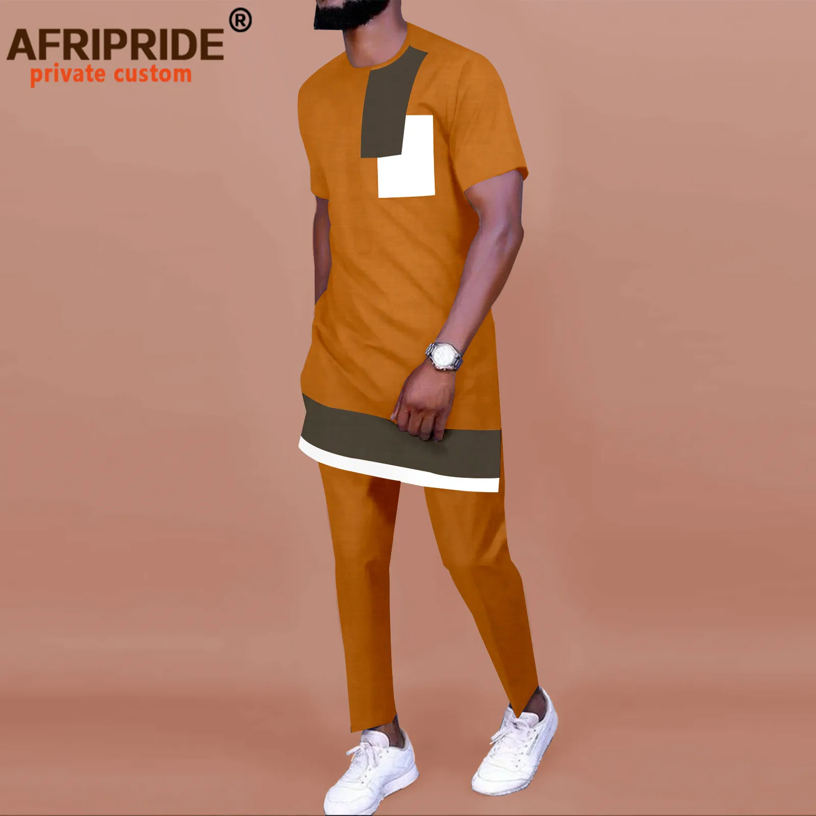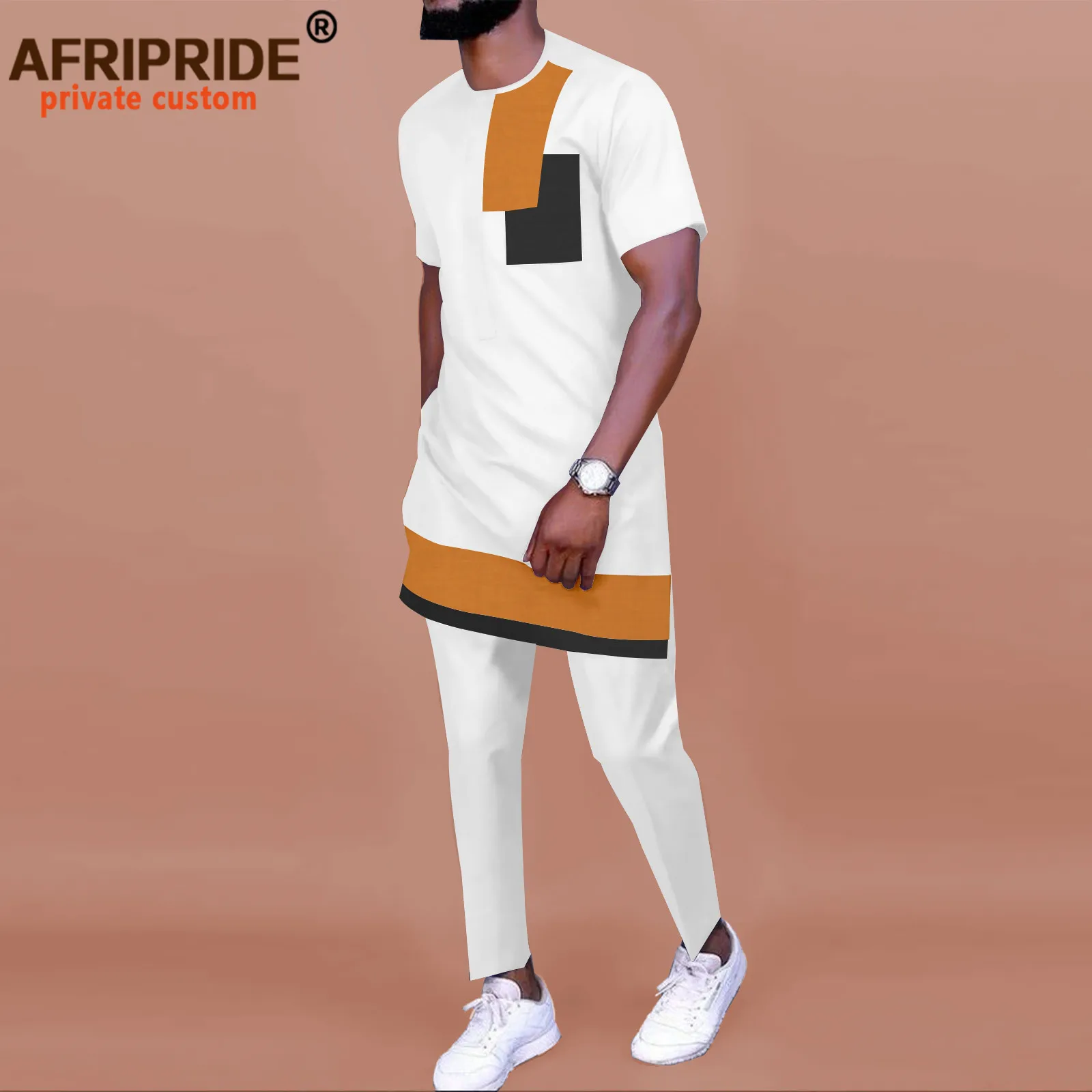Men`s Tracksuit African Clothing 2 Piece Set Short Sleeve Dashiki Tops and Pants 2 Piece Outfits Blouse Sports Suit A2216098