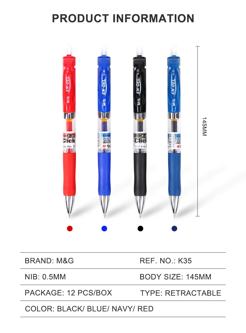 M&G 5Pcs/set 0.5mm Retractable Gel Pens Set Black/red/blue Ink Colored Refills Ballpoint Office School Supplies Stationery