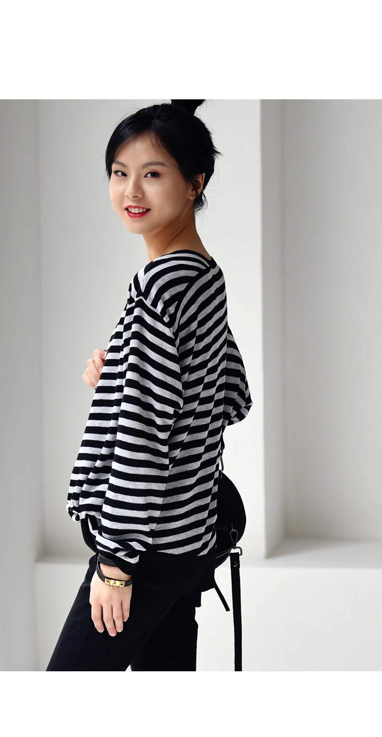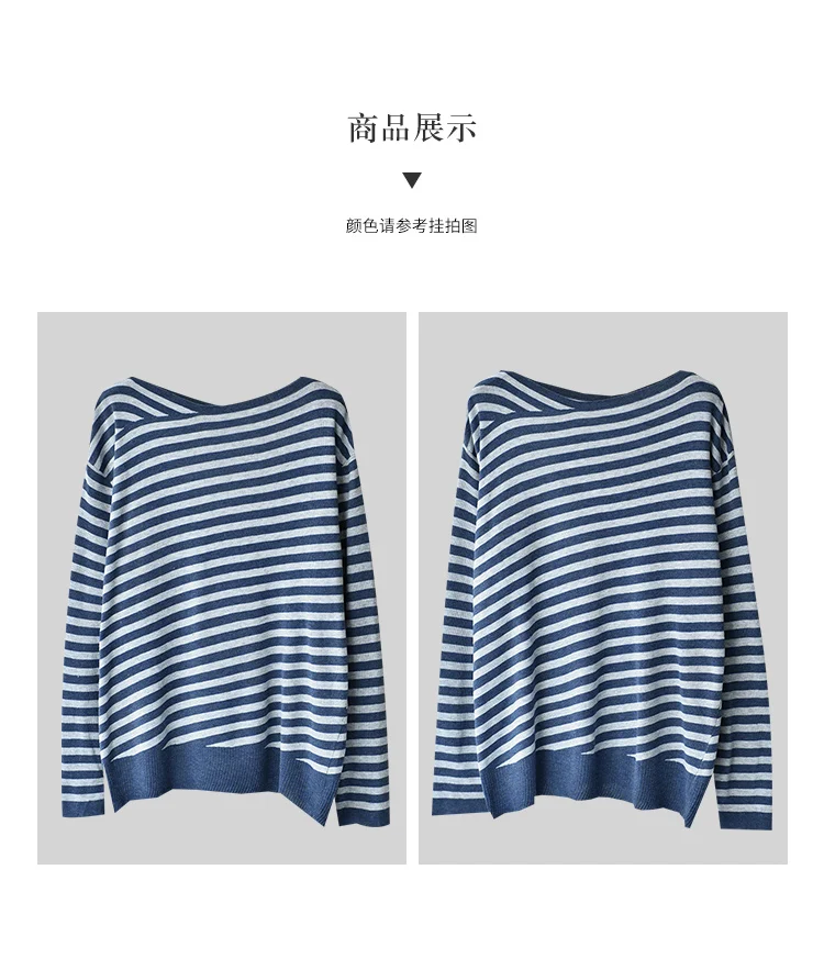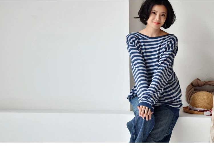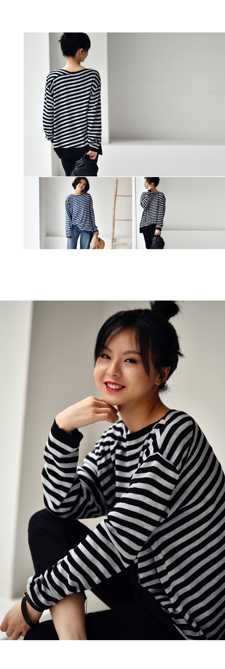 MICOCO Z2218C Art and art contracted stripe bump color loose show thin match one word get jumper