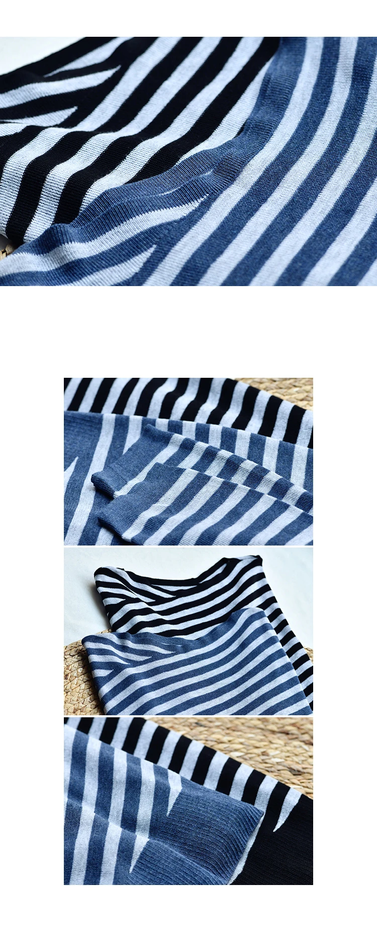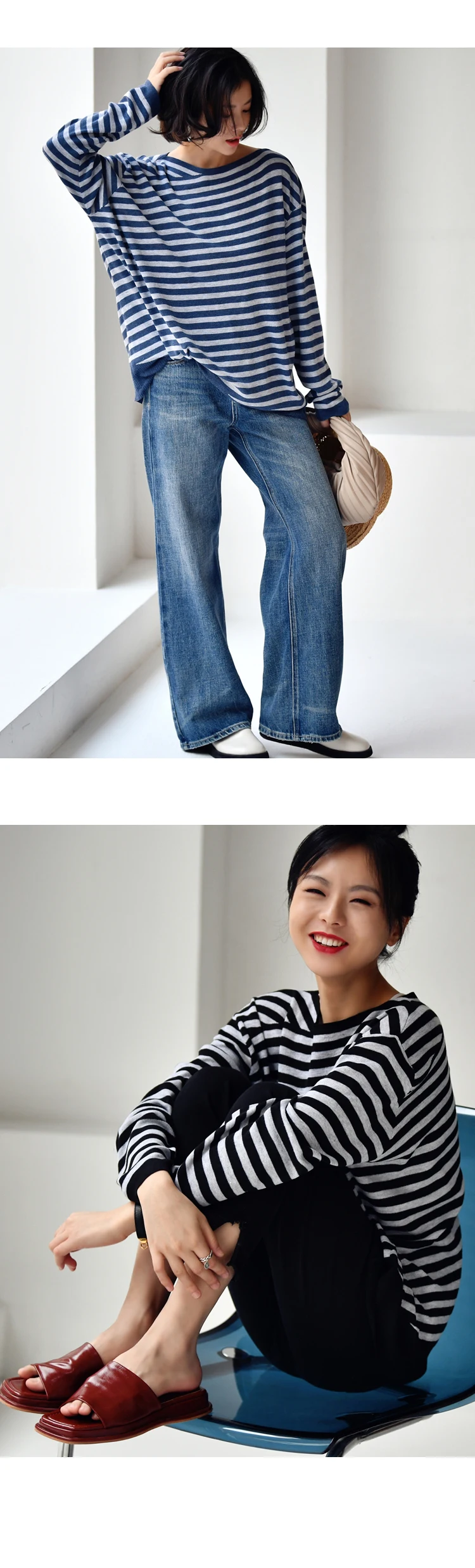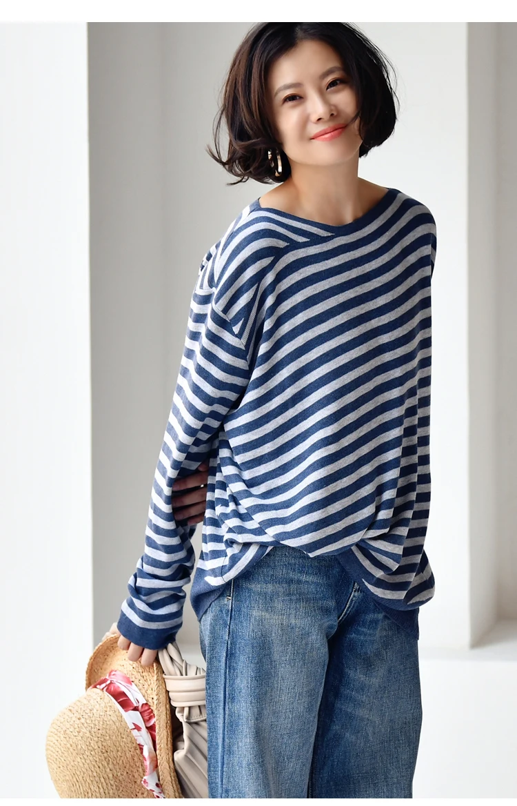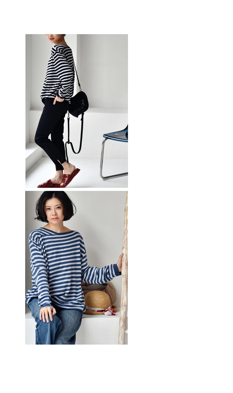 MICOCO Z2218C Art and art contracted stripe bump color loose show thin match one word get jumper