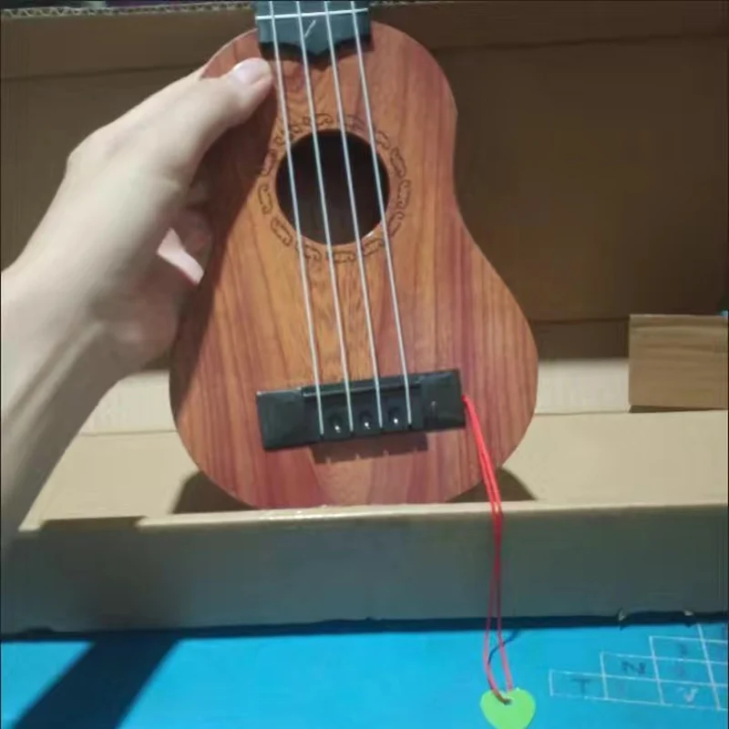 The ukulele toy with ABS body and four advanced carbon nylon string.