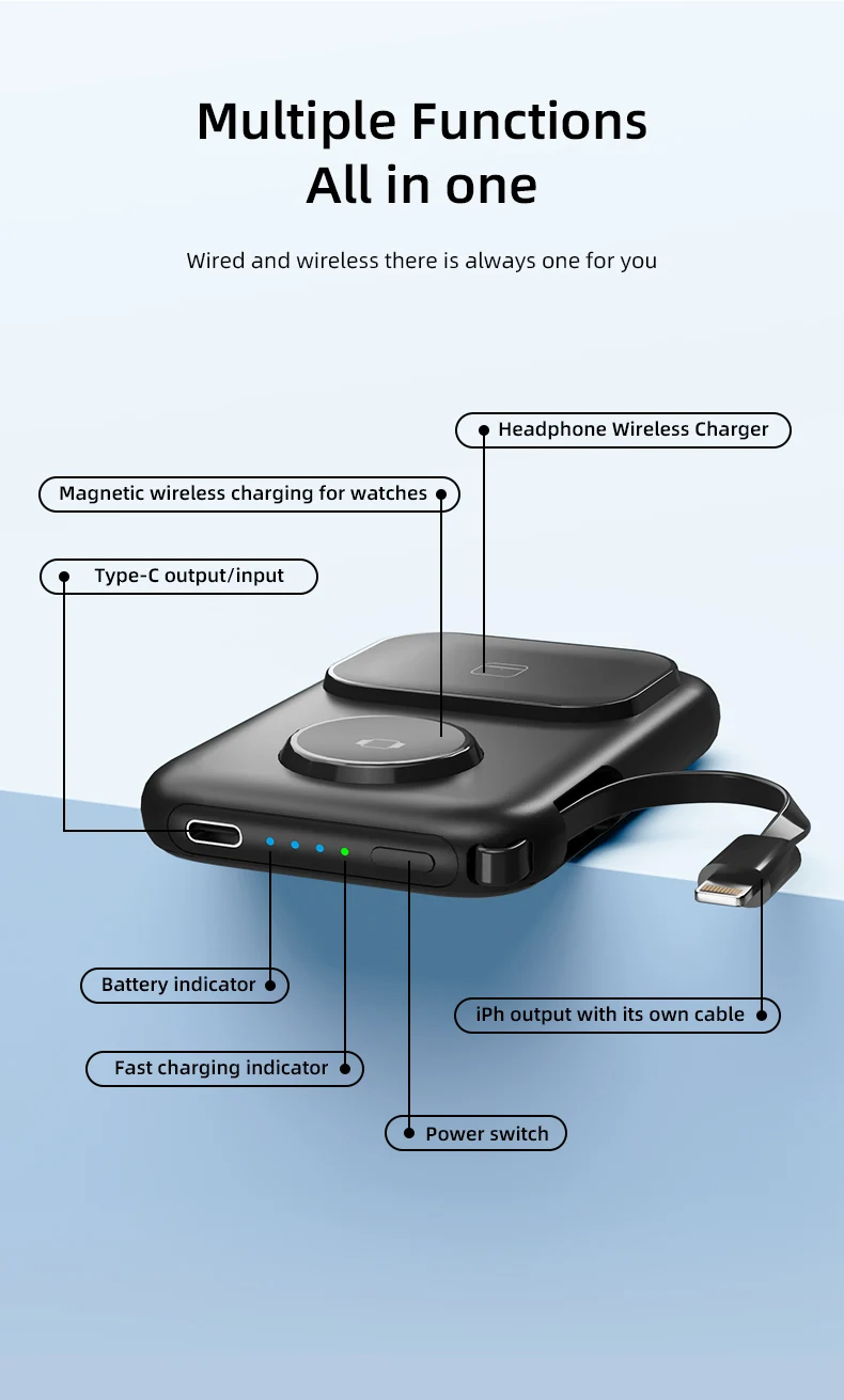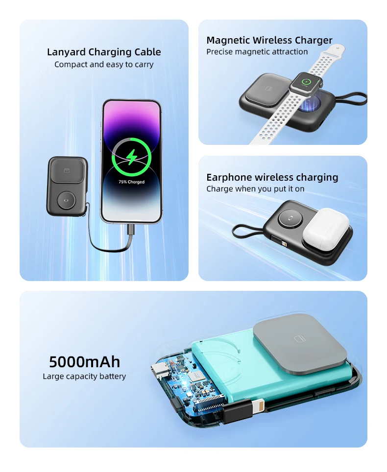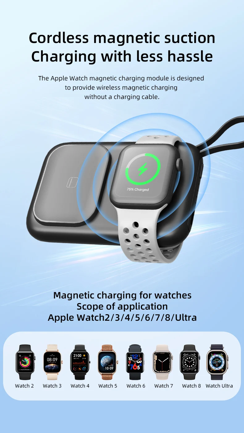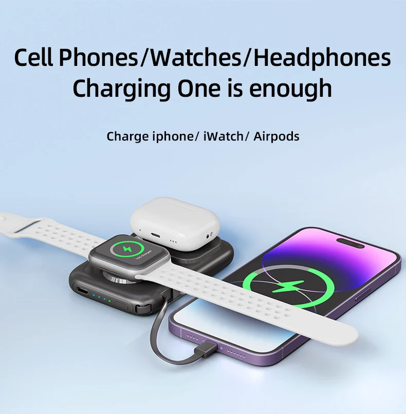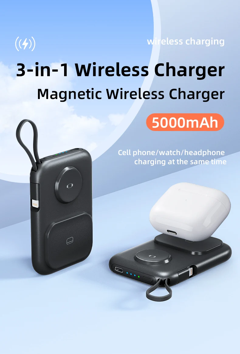Mini Portable Charger Magnetic Wireless Power Bank 5000mAh 3 in 1 Power Banks Backup batter Apple Watch Charger For Apple IPhone