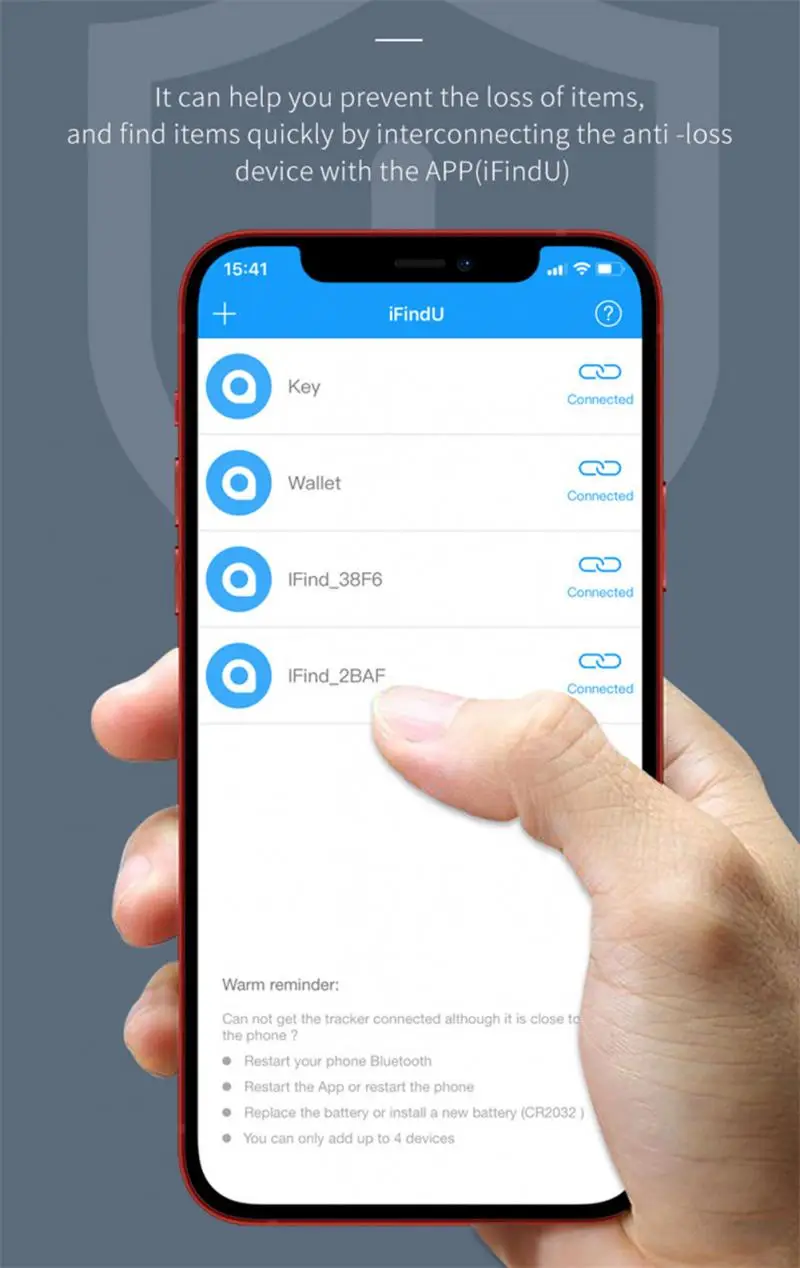 It is used to prevent loss and search of wallets, keys, briefcases, pets, gift boxes and other items.