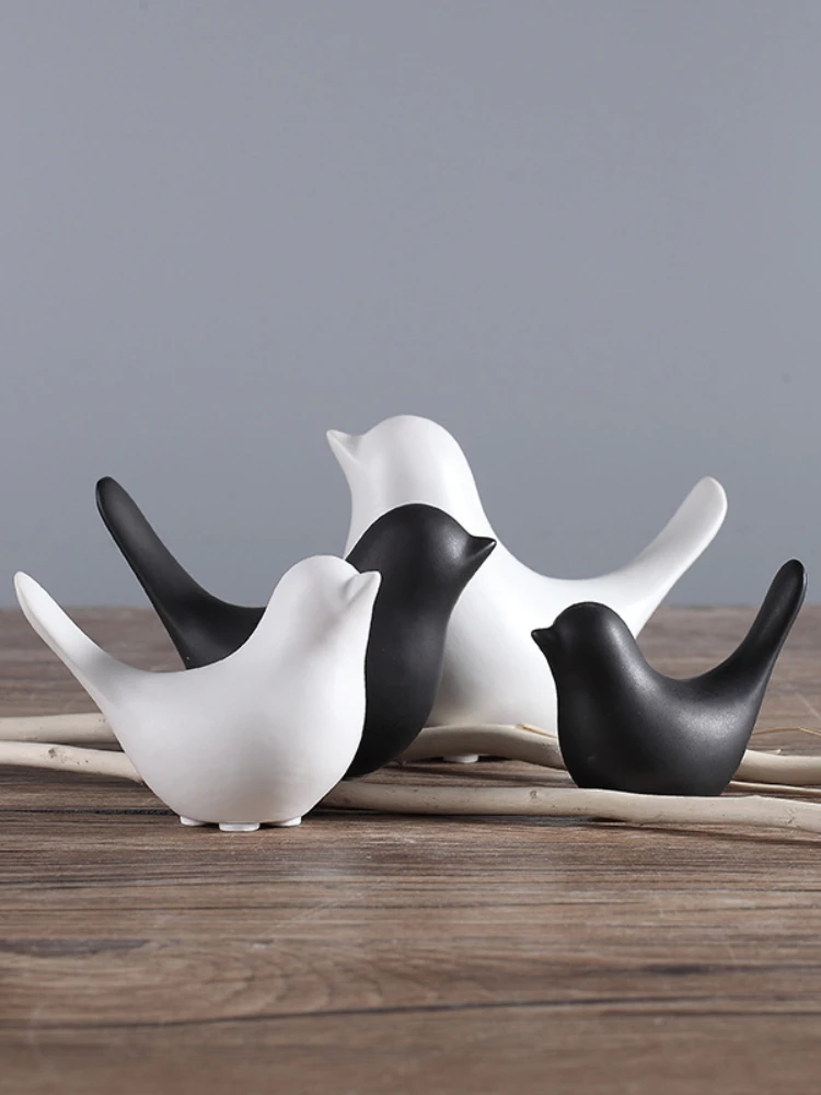 Modern Simple Abstract Birds Black and White Animal Ornaments Family Decorative Gifts Ceramic Crafts Room Decor Bird Figurines