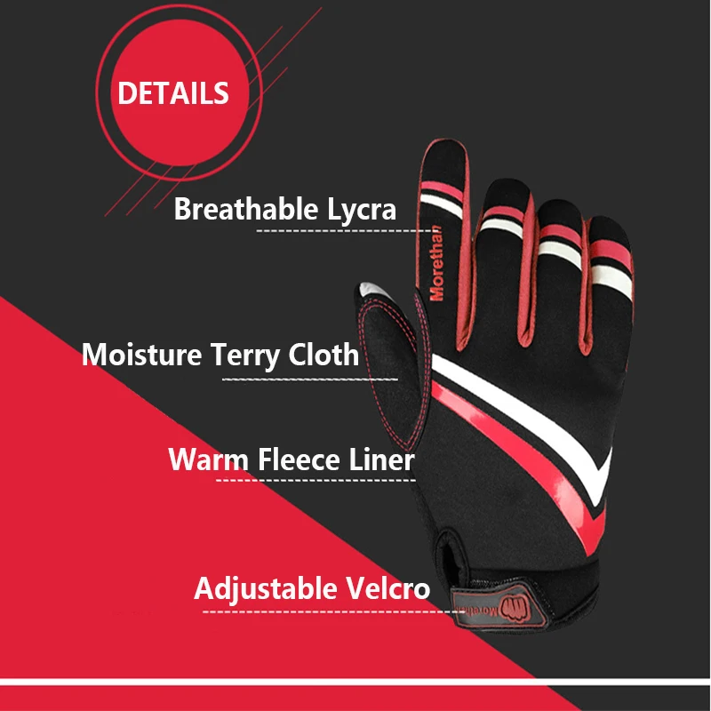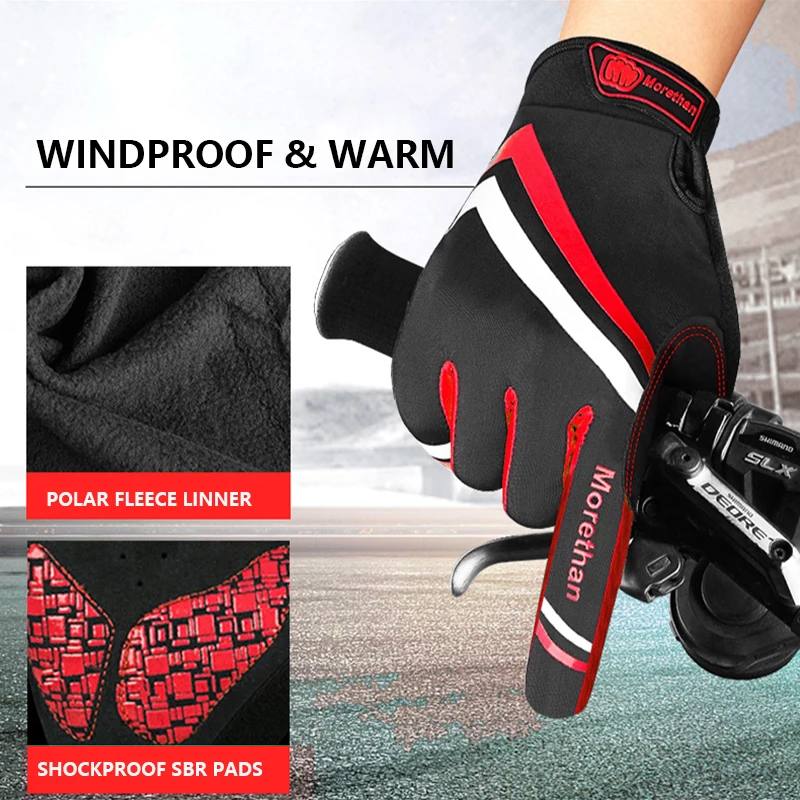 MOREOK Autumn Winter Gloves Full Finger Bike Gloves Touchscreen Bicycle Gloves Anti-slip Cycling Gloves Mountain Bike Gloves Men