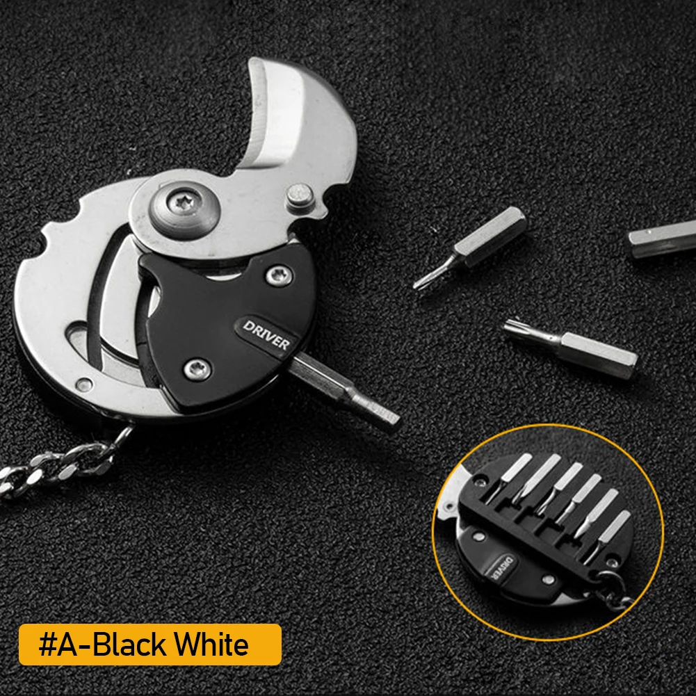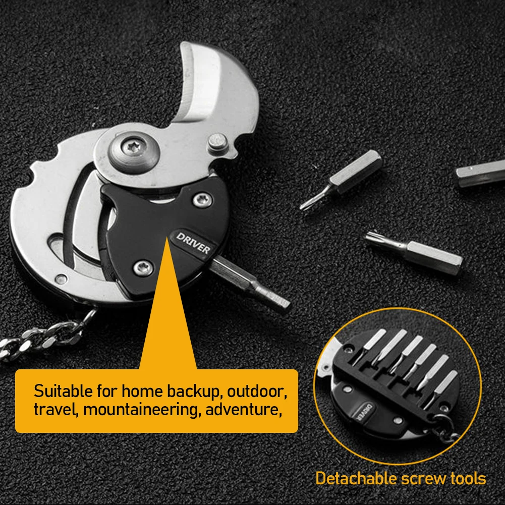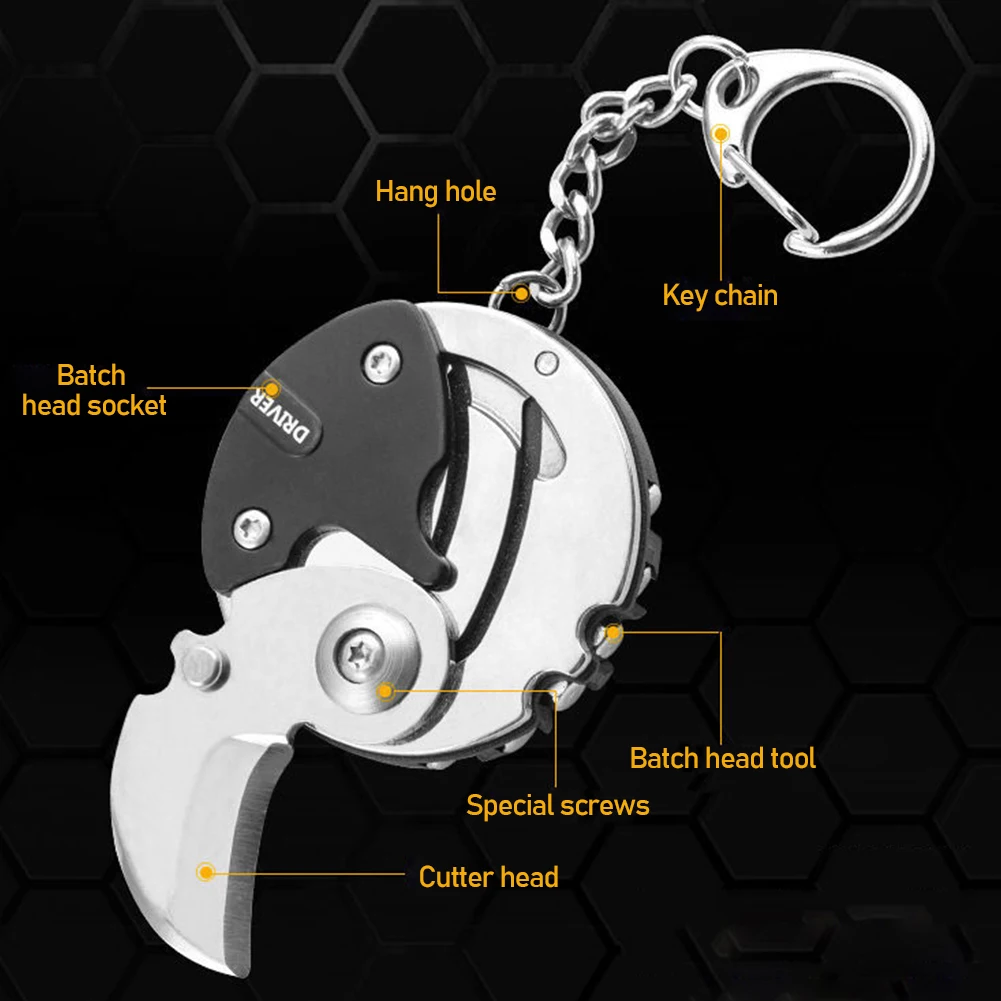 • Powerful function: scale ruler, cutter, bottle opener, nail file, inner hexagon, staple, cutting edge, screwdriver, magnet.