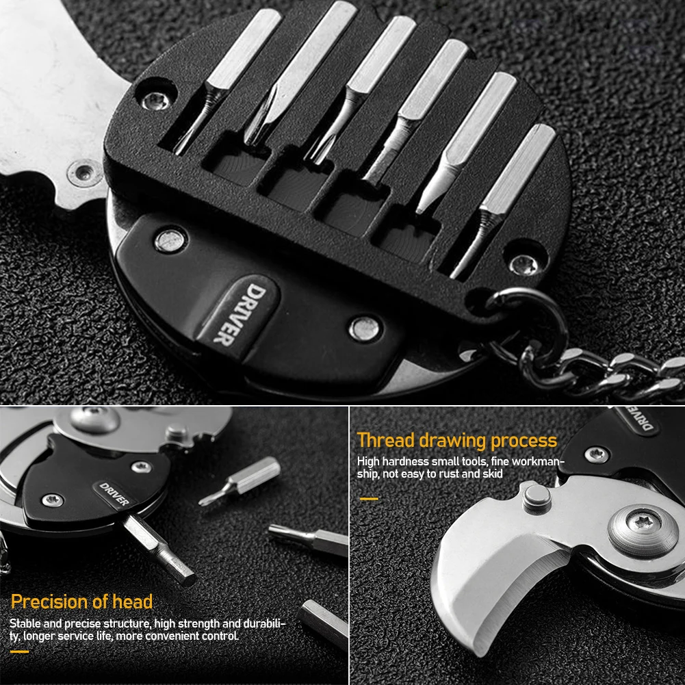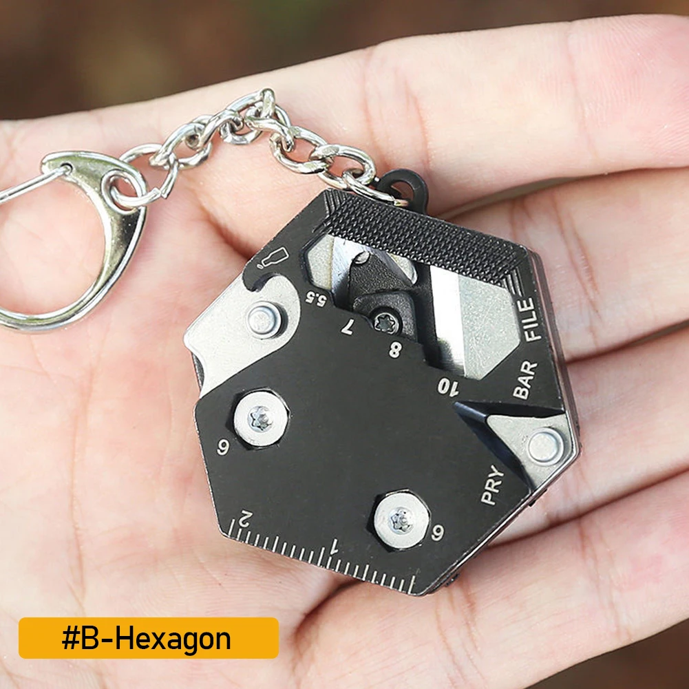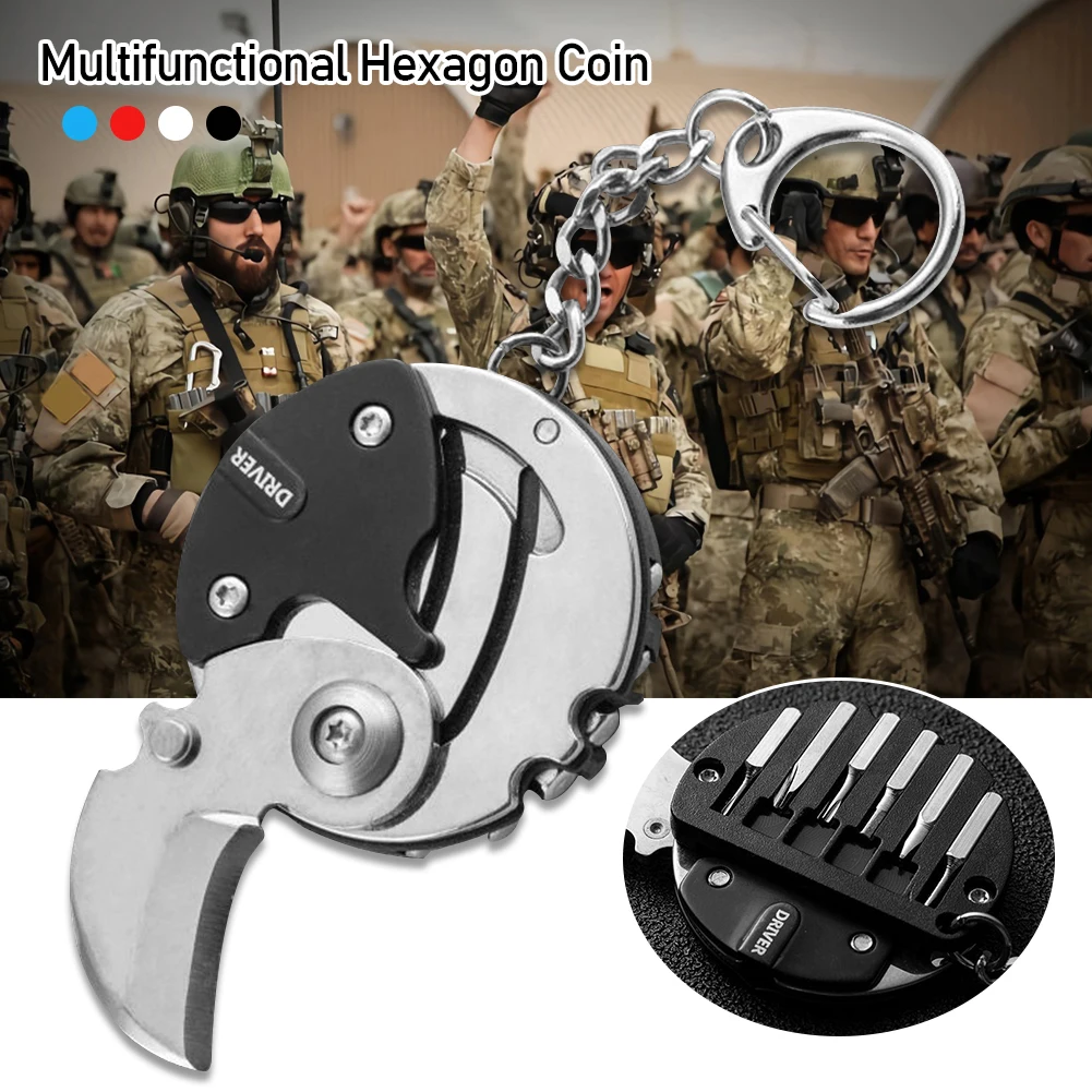 Multifunctional Keychain Hexagon Coin Knife Folding Mini Pocket Screwdriver Cutter Opener Scale Ruler Nail Clipper Outdoor Tool