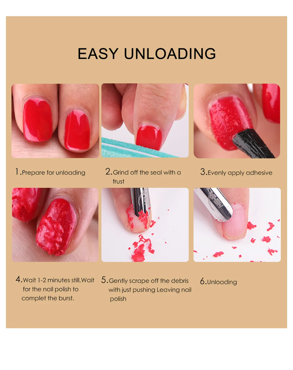 5. Gently scrape off the debris with just pushing Leaving nail polish