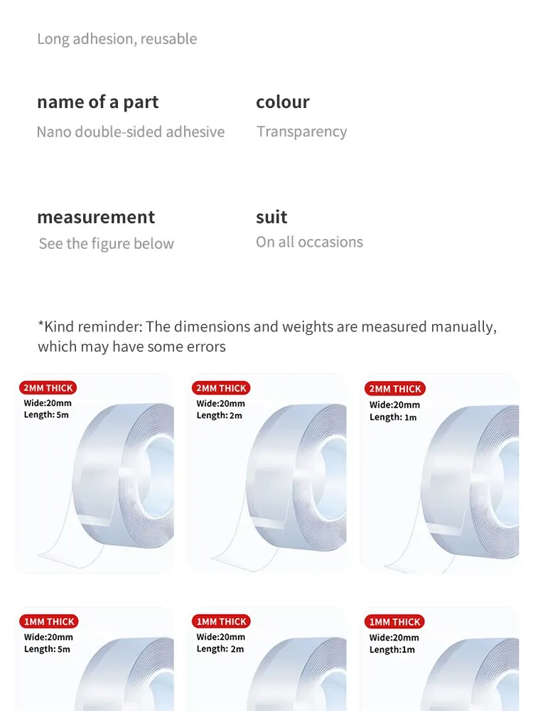 Nano Double Sided Adhesive Waterproof Transparent Reusable Acrylic Double Side Adhesive Suitable For Home Bathroom Decoration