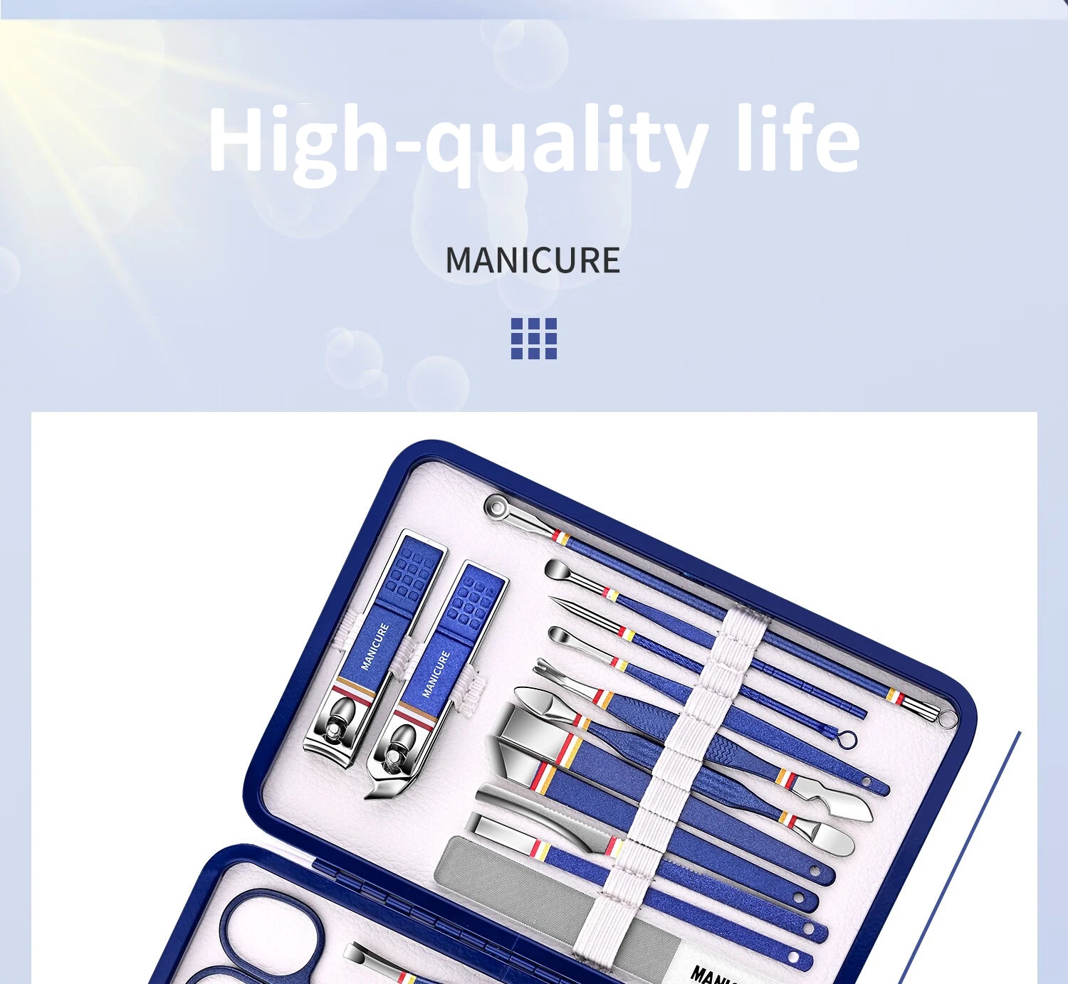 New 9-19pcs/set Nail Cutter Set Stainless Steel Nail Clippers Set With Folding Bag Manicure Kits Scissors Makeup Beauty Tool