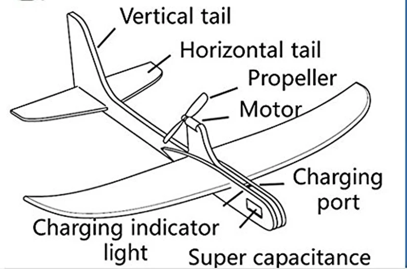 • Warning: the rotating propeller may scatch your skin,don’t touch it. Never charge the plane for more than 20 seconds, or it may injure the capacitance.