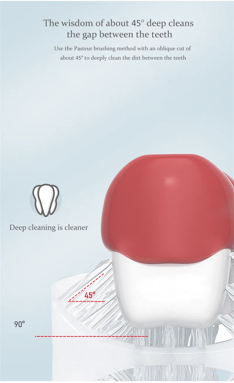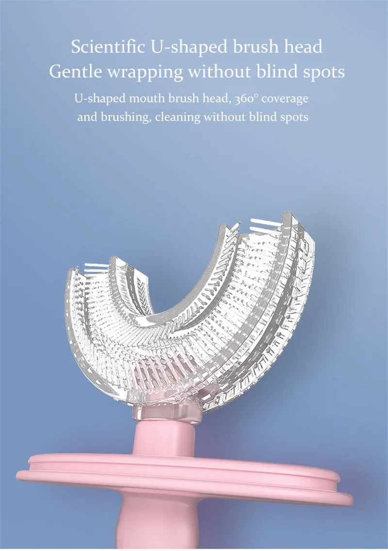 U-shaped mouth brush head, 360° coverage and brushing, cleaning without blind spots.