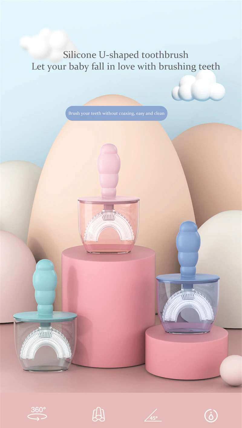 New Baby Toothbrush Children Teeth Oral Care Cleaning Brush Convenient Kid Silicone Newborn U-Shaped Teethbrush with Dust Cover