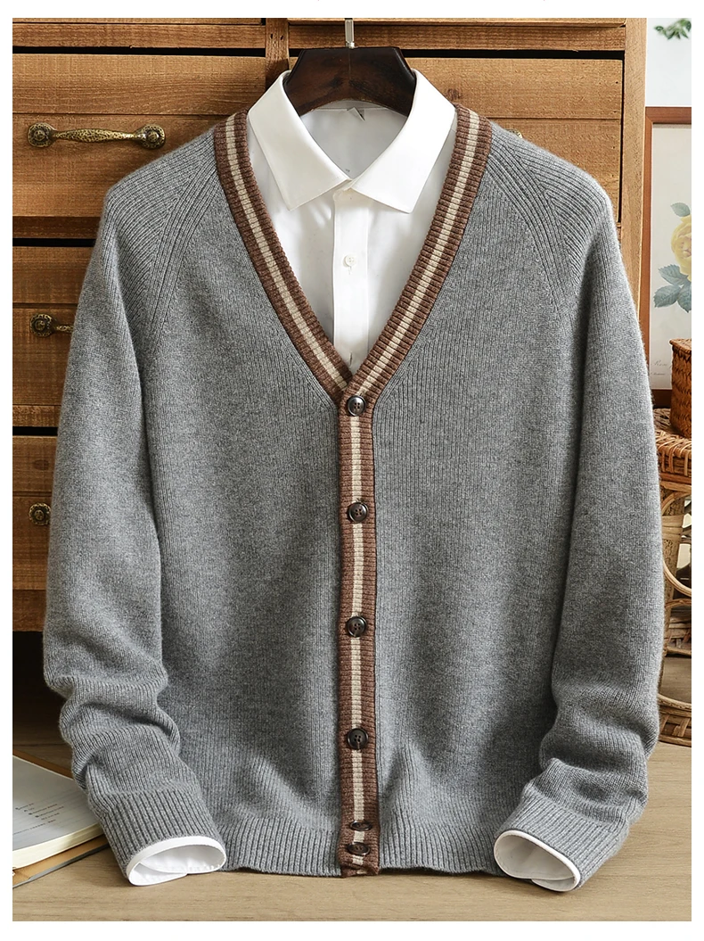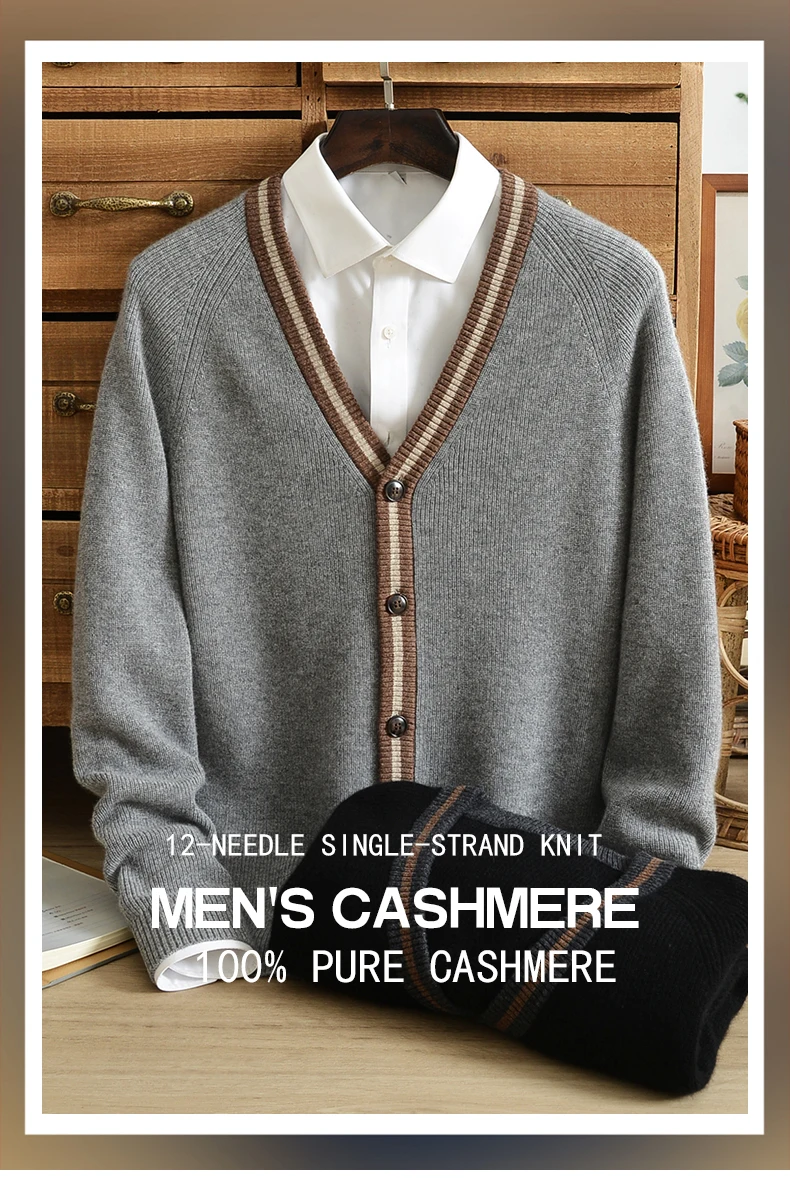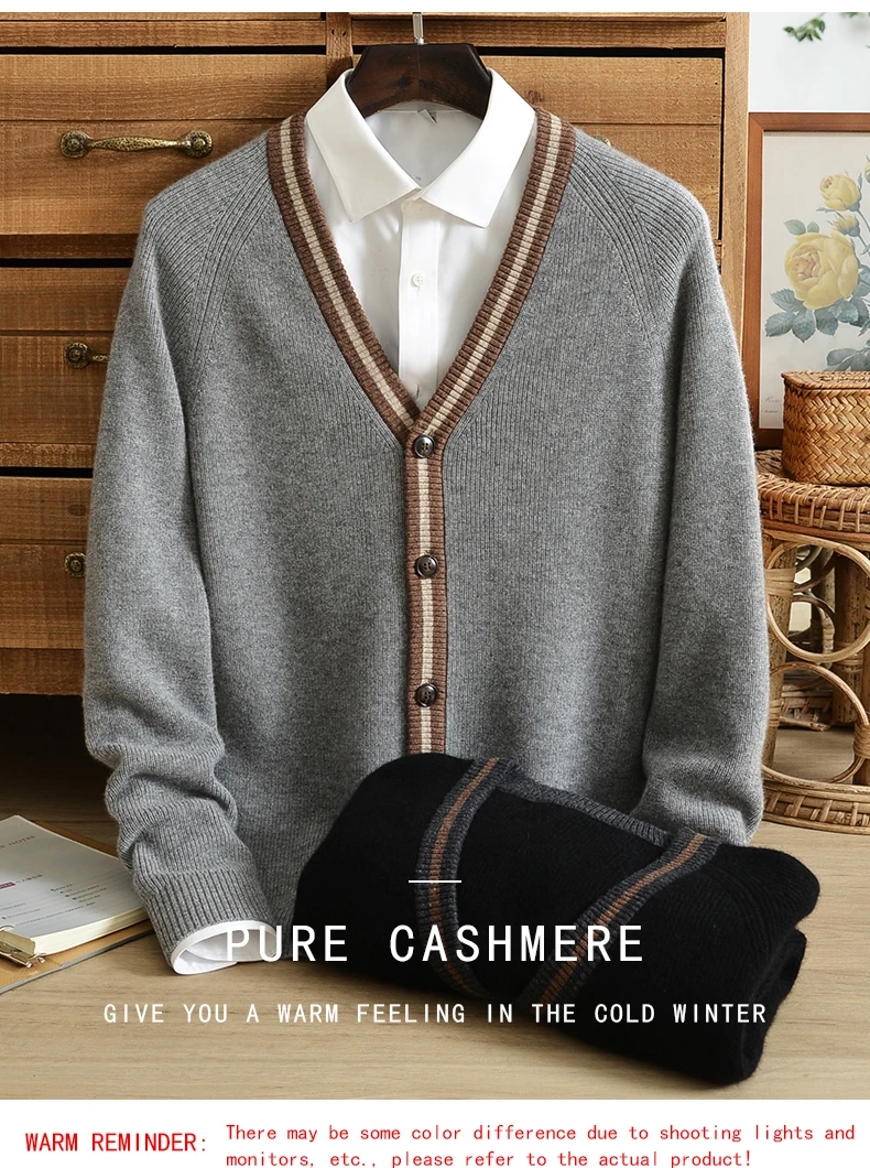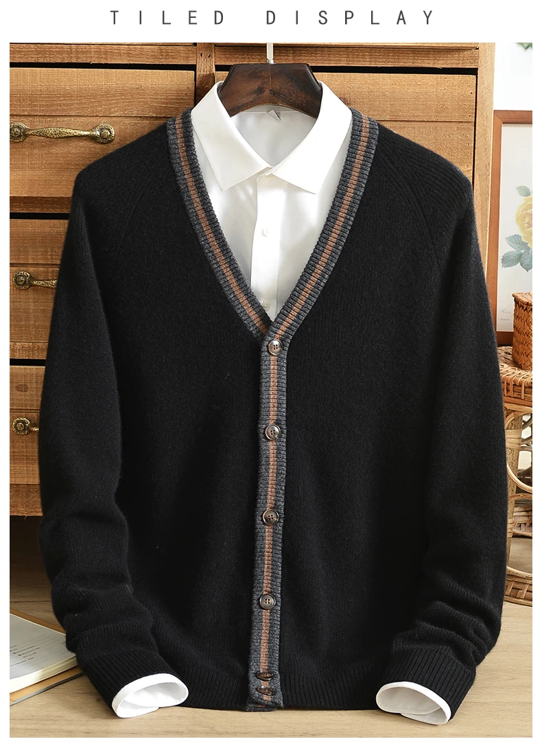 New cashmere sweater men's knitted cardigan youth V-neck thick casual jacket solid color sweater buttons keep warm in winter