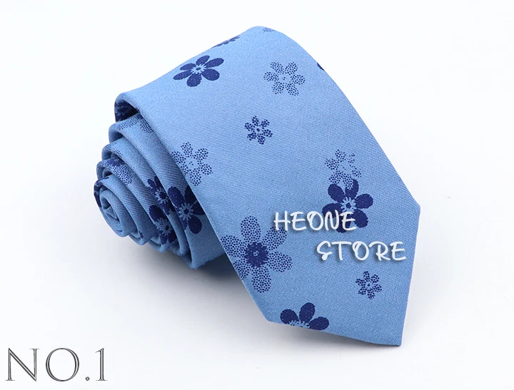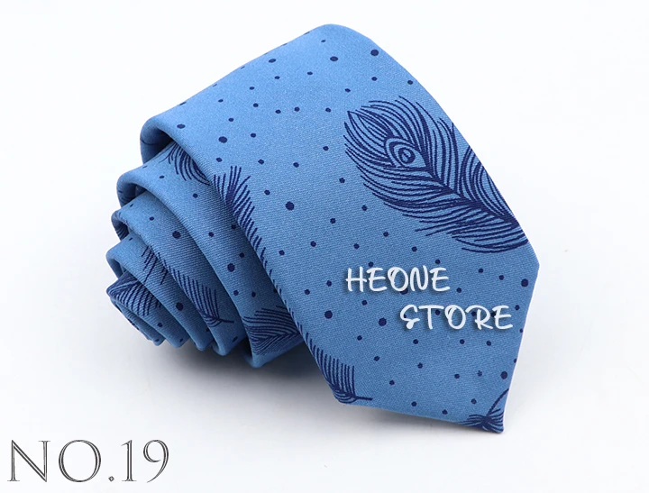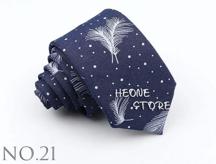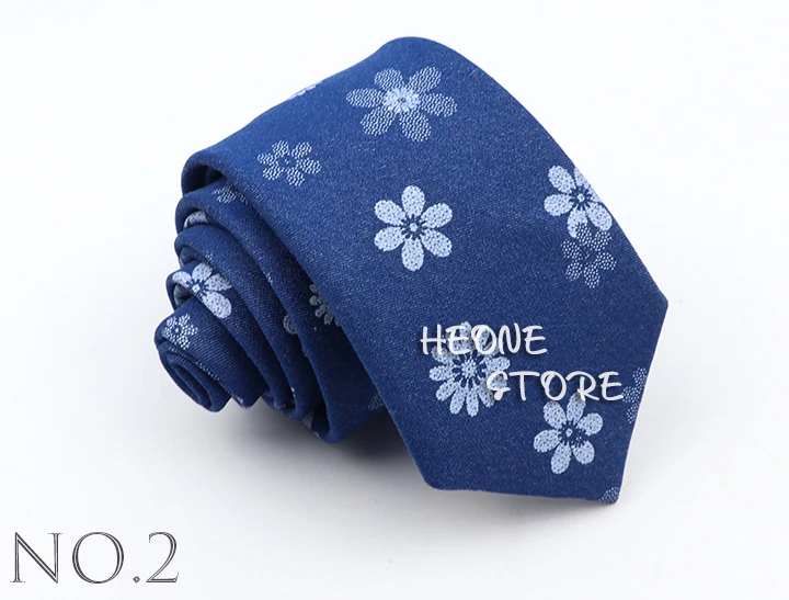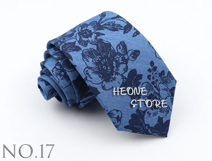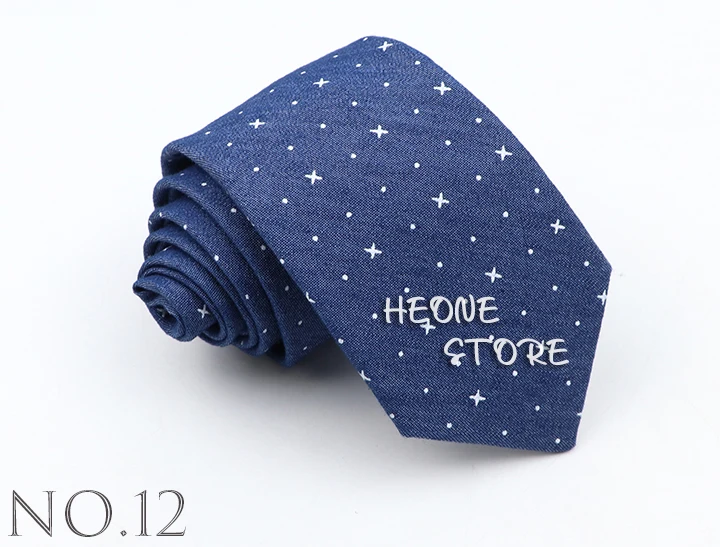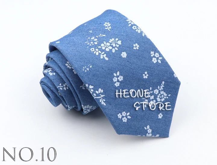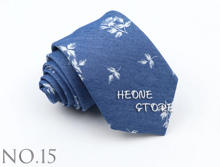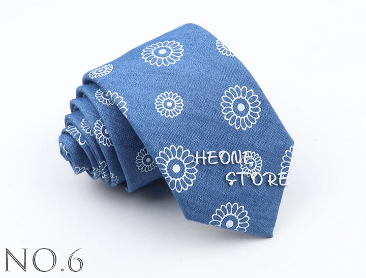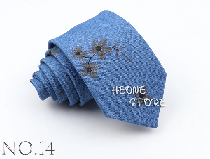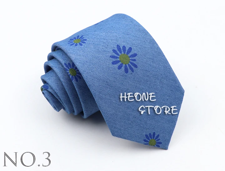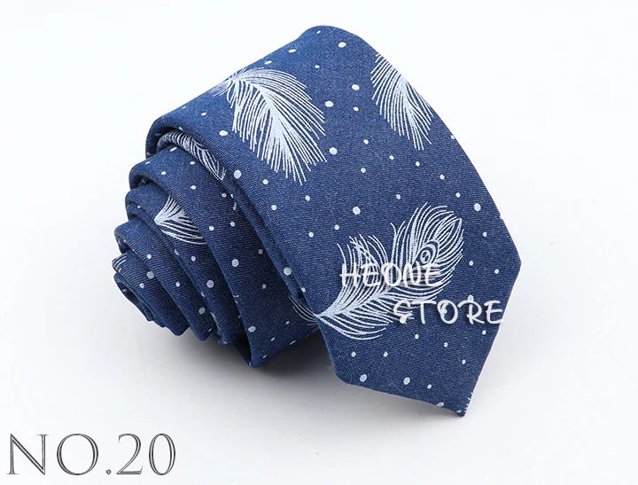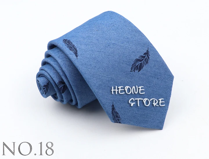 New Cotton Denim Ties For Men 7CM Floral Feather Dot Blue Neck Tie For Wedding Party Casual Print Slim Neckties Daily Wear Gift