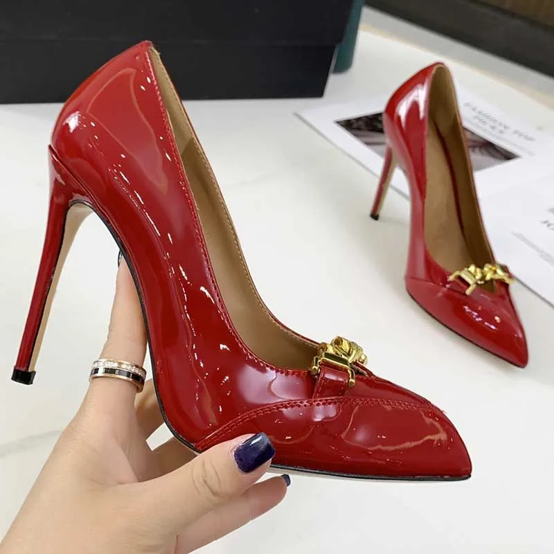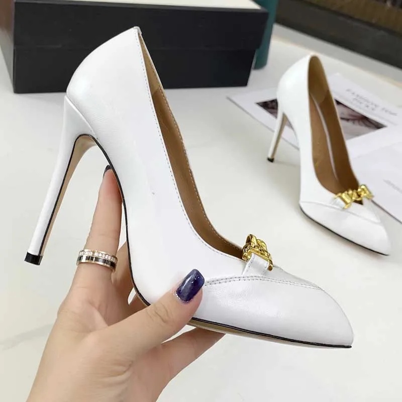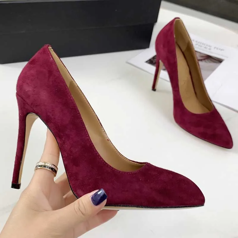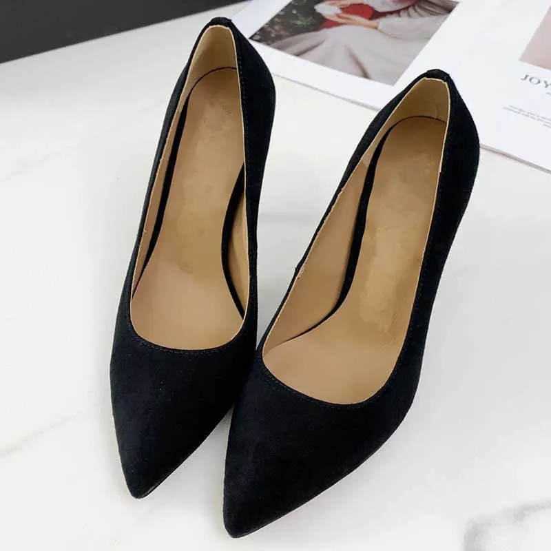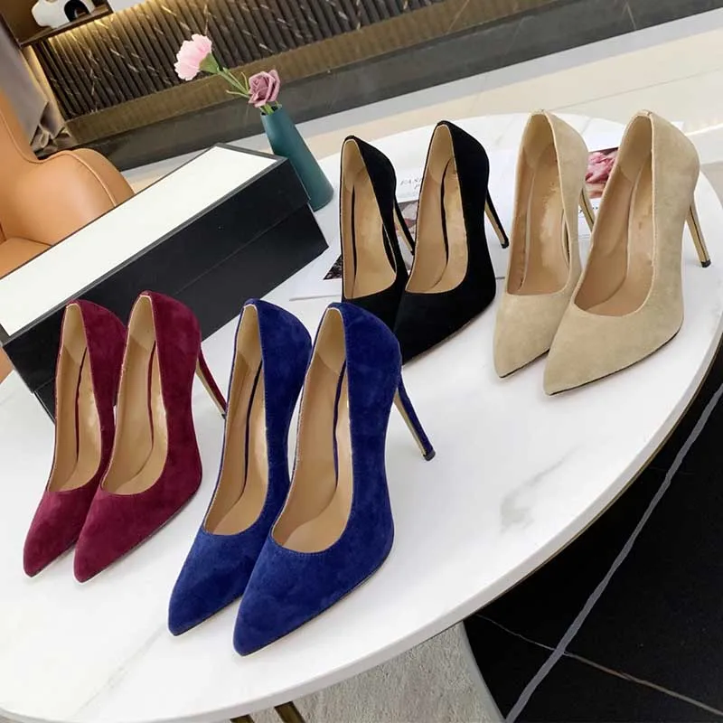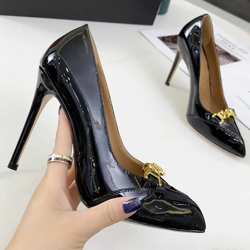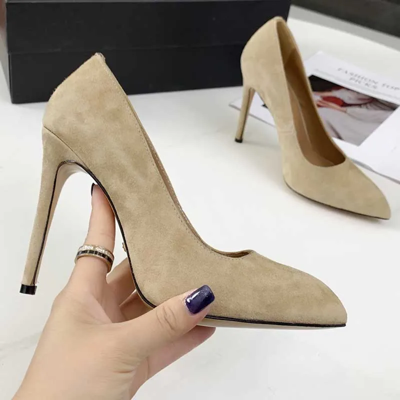 New Designer Fashion Womens High Stiletto Heel Pump Shoes Leather Sexy Pointed Toe Slip On Spring Autumn Classical Shoes Woman