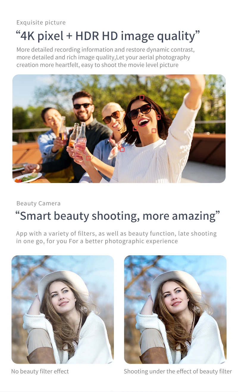 -There are 2 cameras to choose from. Use a 1080P or 4K HD wide-angle camera to provide a wide range of high-definition pictures and videos.