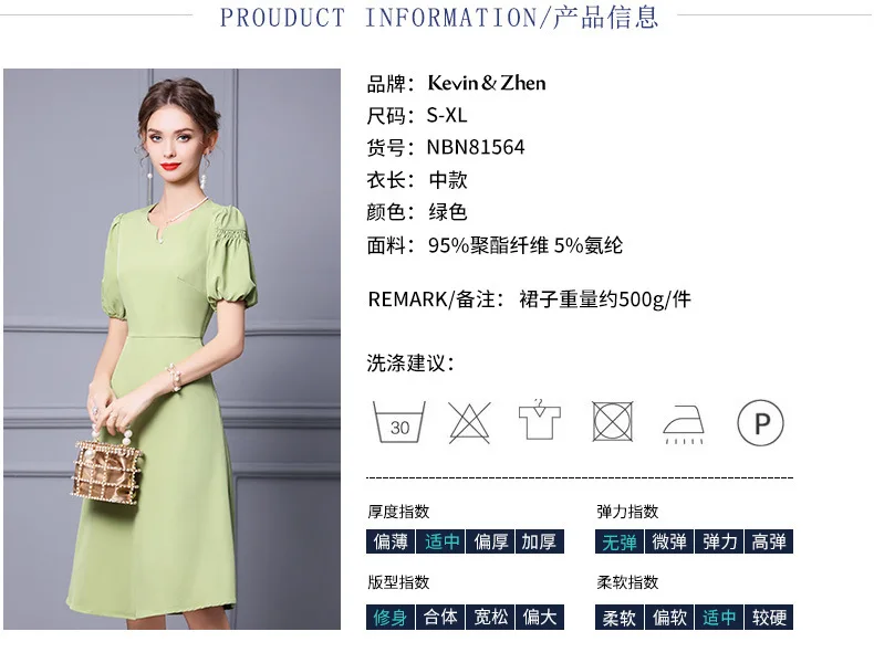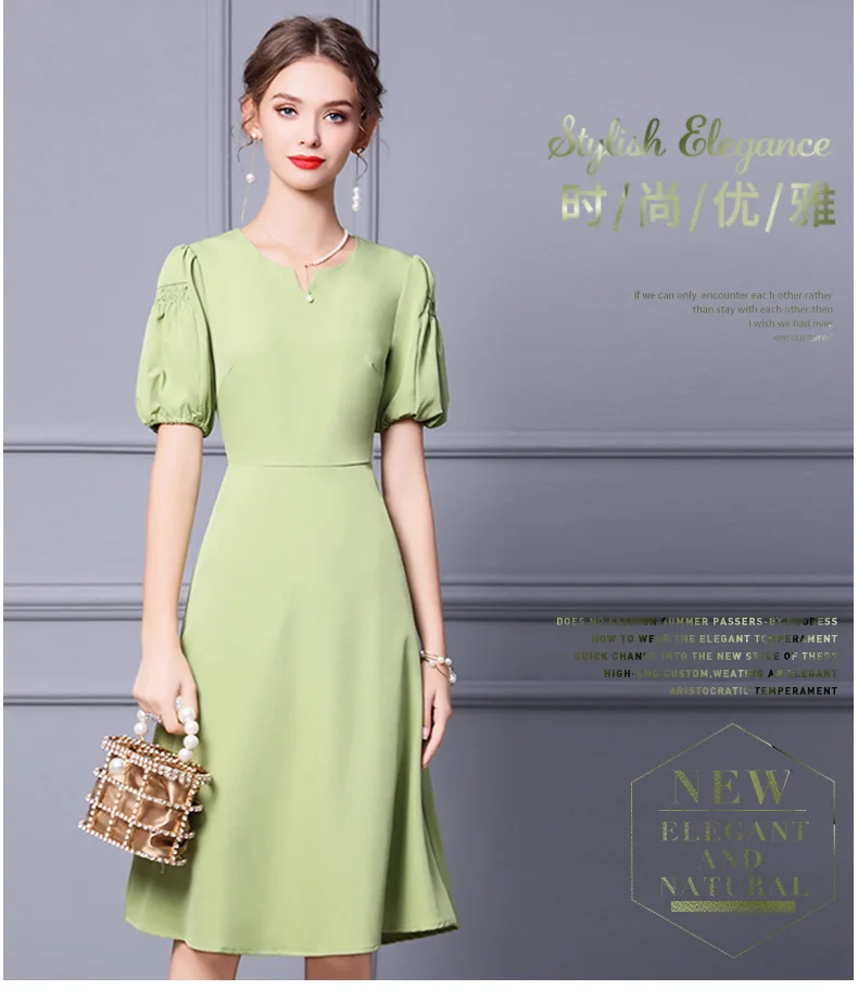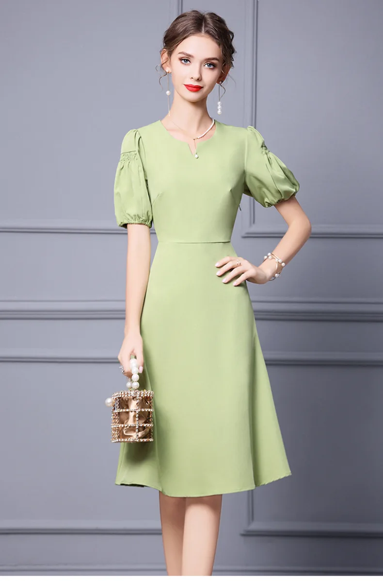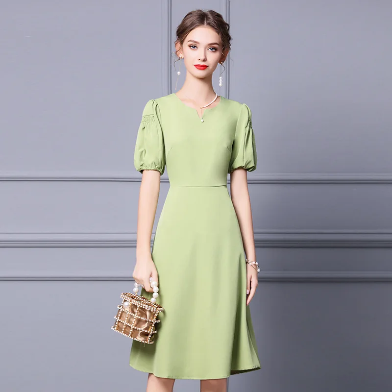 New fashion minority Avocado Green puffy summer dress with slim waist dresses