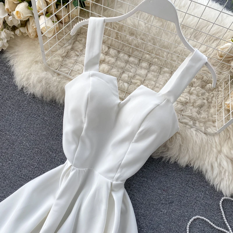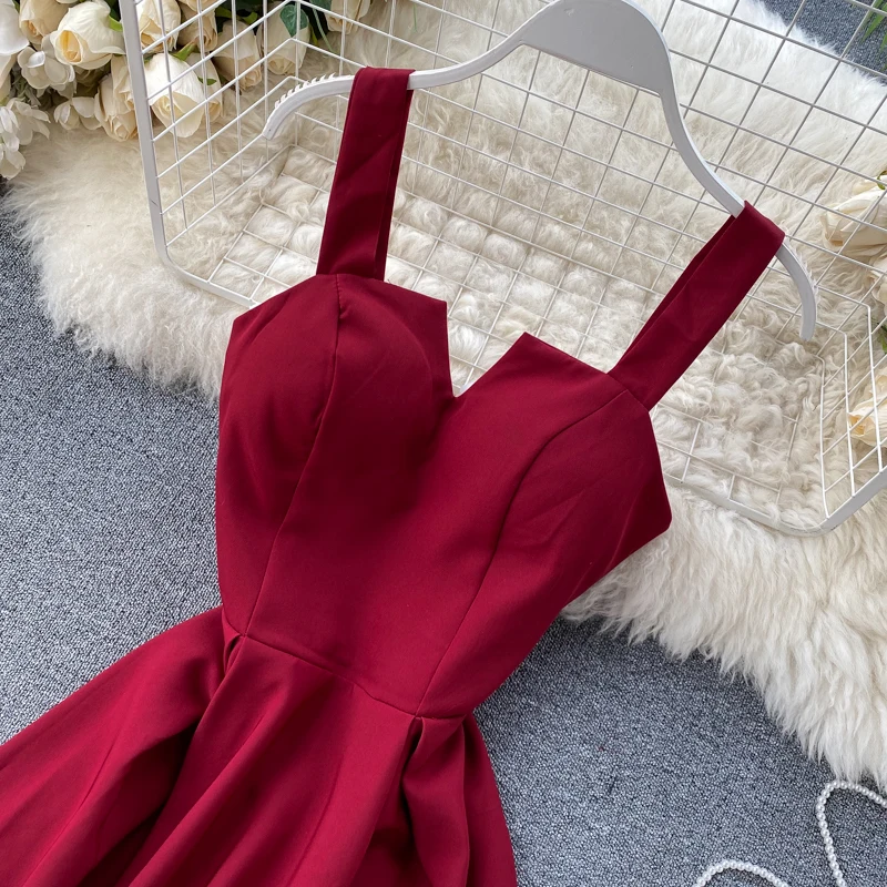 New Fashion Sexy V-neck Open Back Retro Solid Color Waist Slim Womens Formal Dresses Birthday Dress for Women