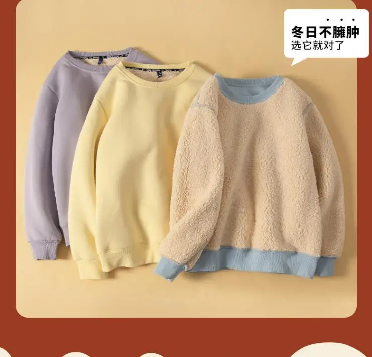 New hoodies sweatshirts with fur long sleeve warm round neck for winter cothing for women