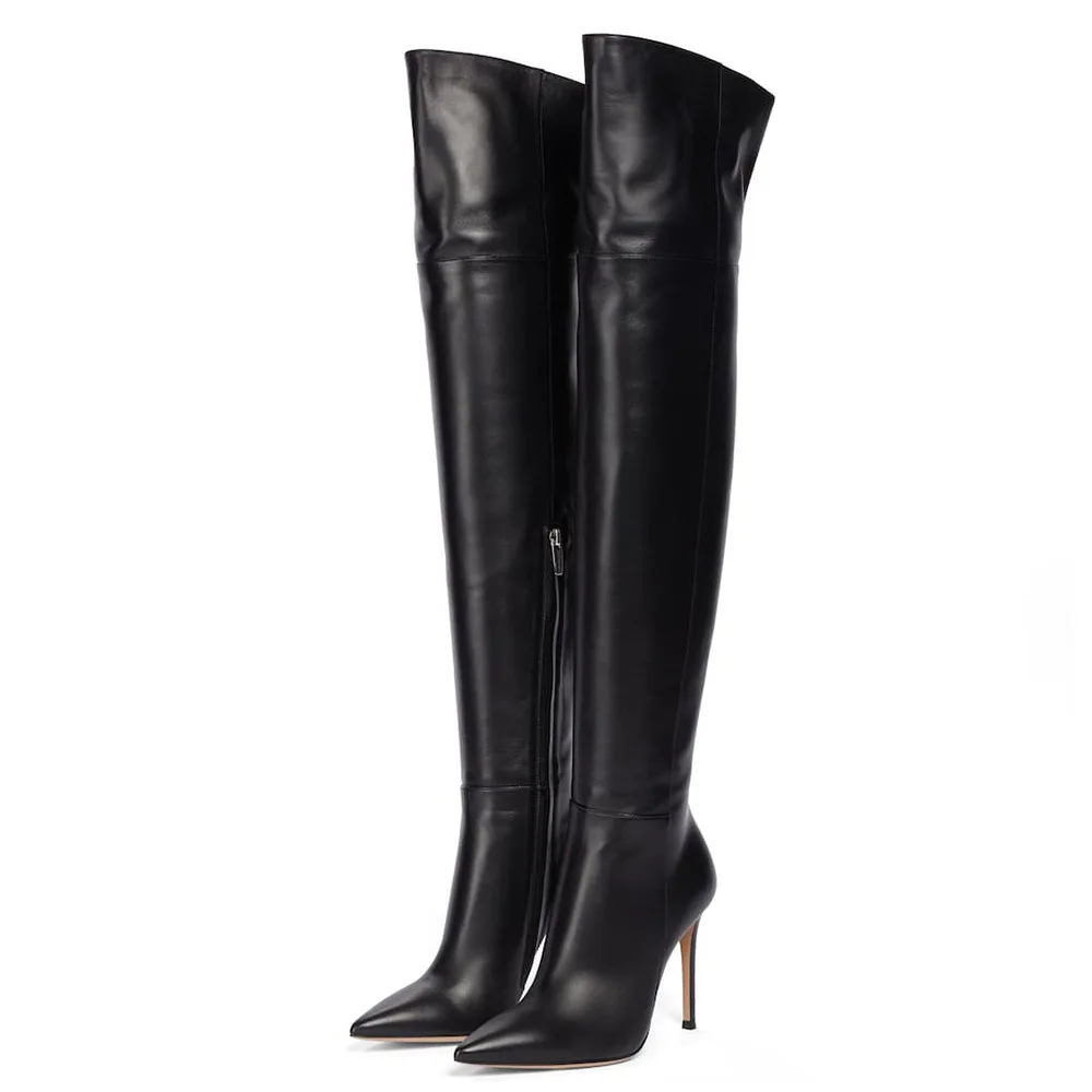 New Matte Leather Women Thigh High Crotch Boots Pointed Toe Sexy Ladies High Heel Runway Trendy Shoe Woman Over The Knee Botas