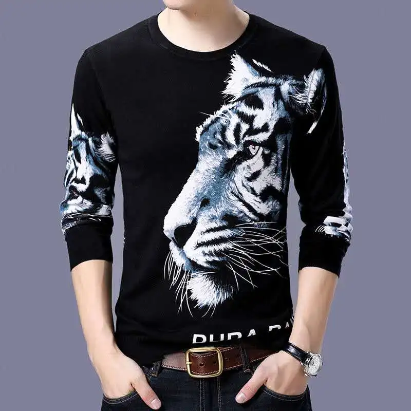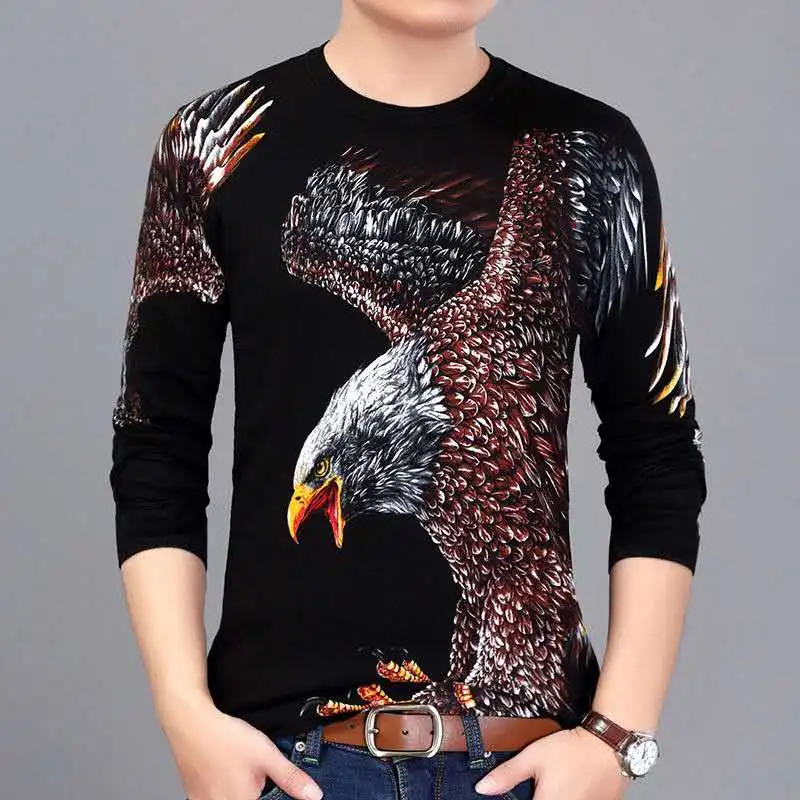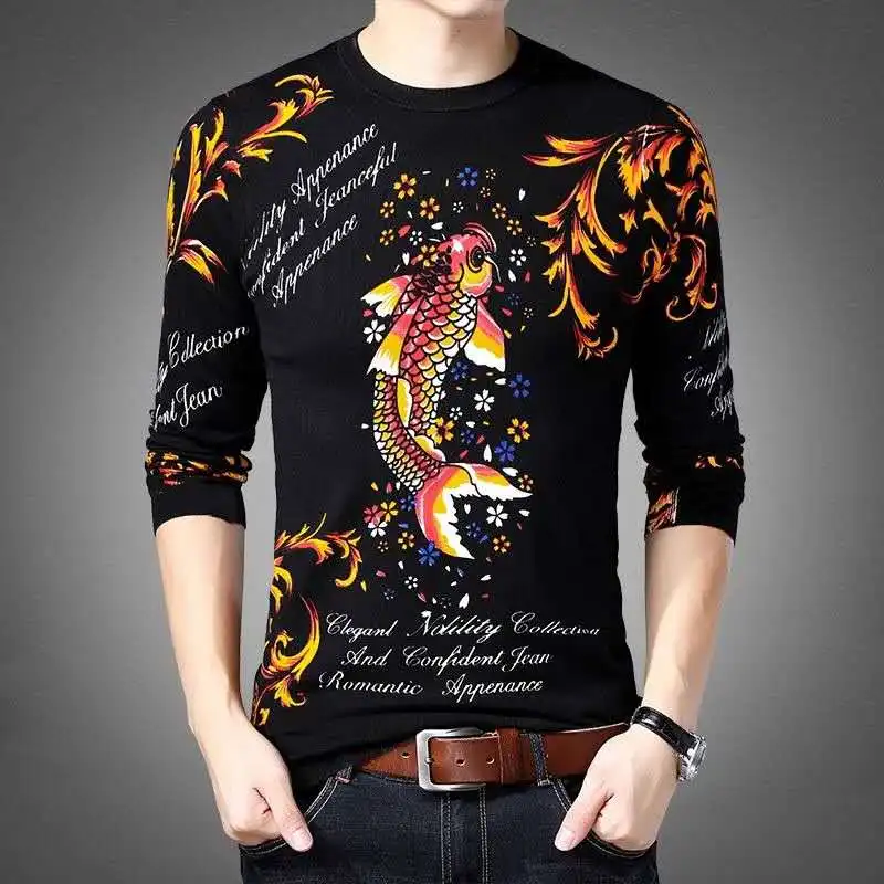 New men's fashion long-sleeved T-shirt 3D printed personality trend style men's clothing young and middle-aged clothing M – 4XL