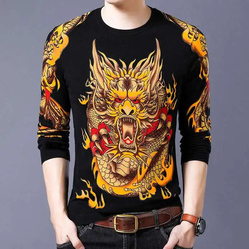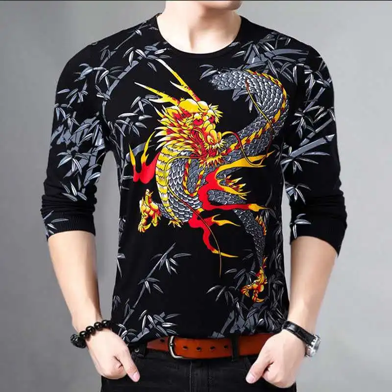 New men’s fashion long-sleeved T-shirt 3D printed personality trend style men’s clothing young and middle-aged clothing M – 4XL