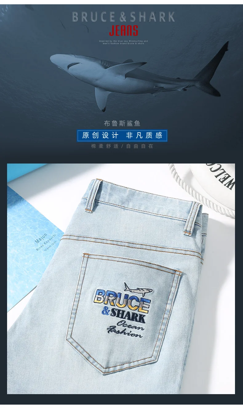 New Men‘s Jeans Short Business Denim Casual Fashion Stretch Thin Soften Cotton Man Pants Straight Loose Top Quality big size