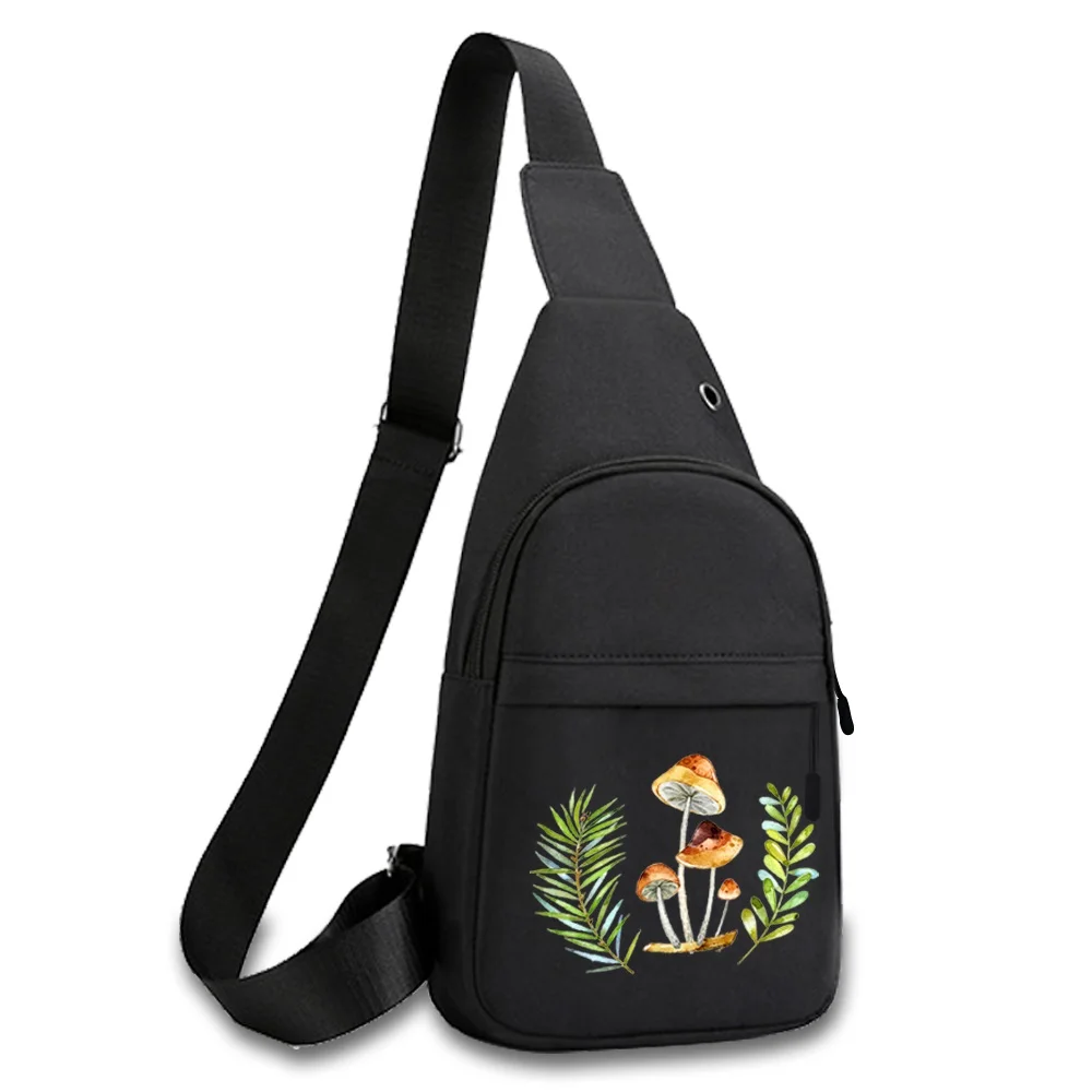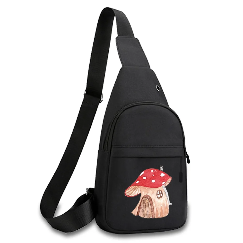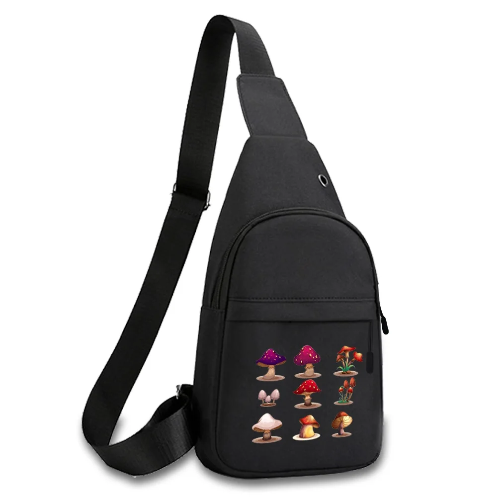 New Mushroom Print Chest Bag Canvas Shoulder Bag Women Crossbody Bag Men Fashion Bum Bag Travel Purse Phone Pouch Pocket Hip Bag