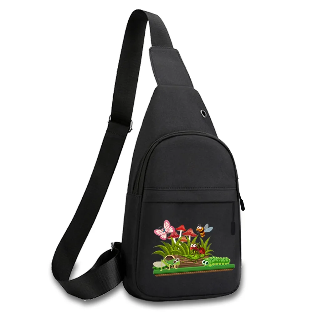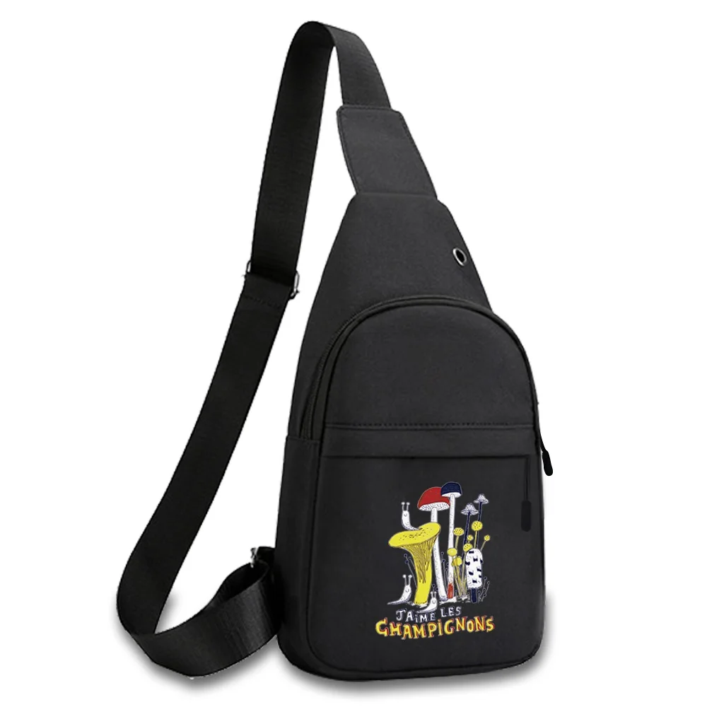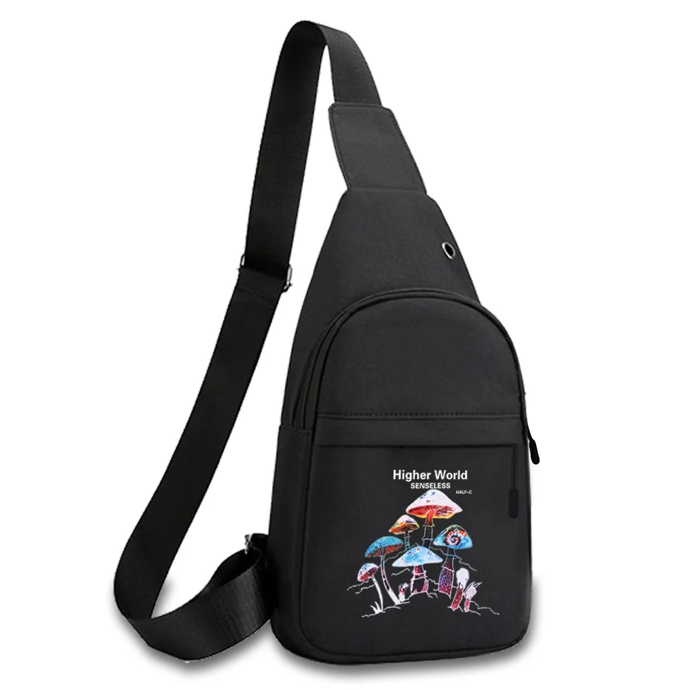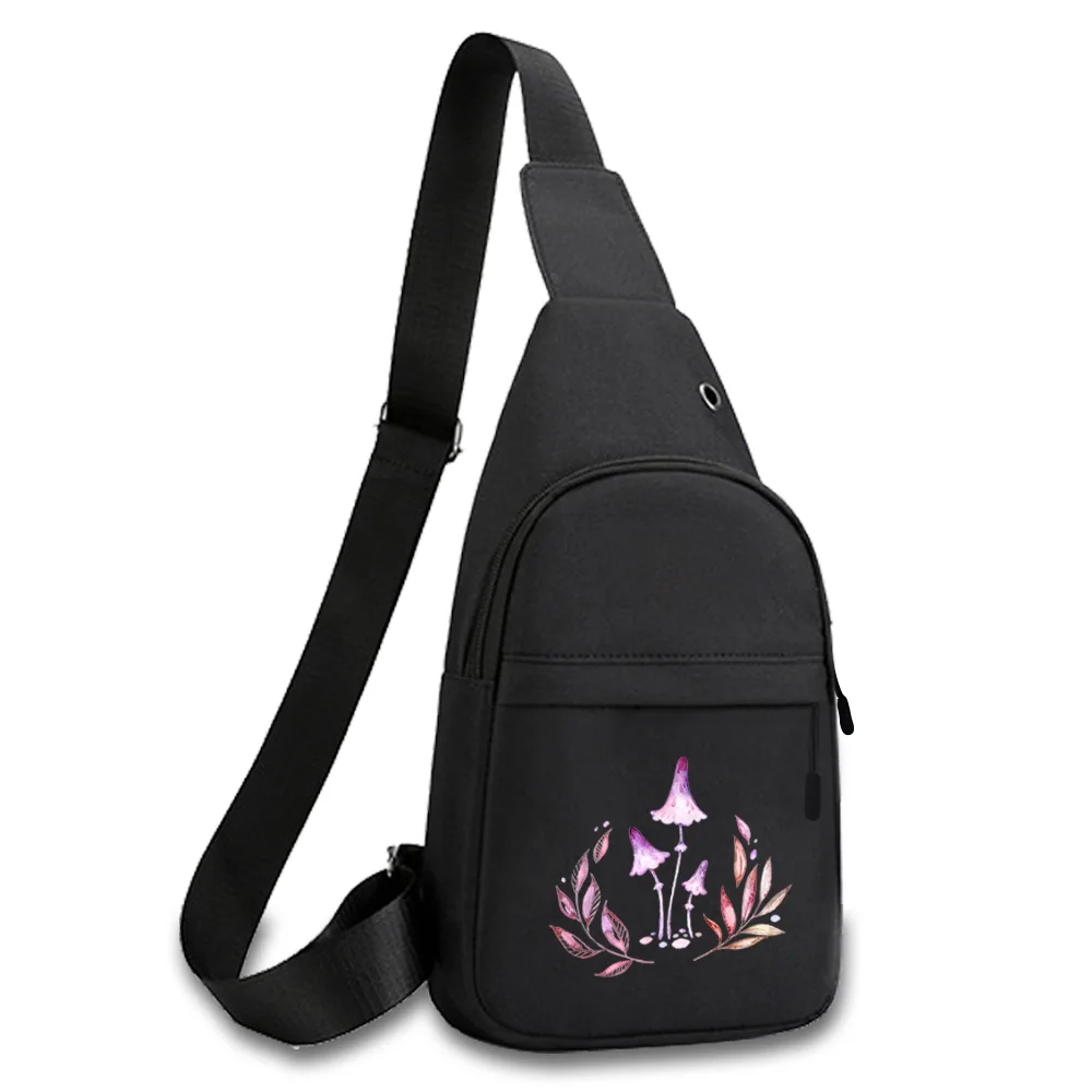 New Mushroom Print Chest Bag Canvas Shoulder Bag Women Crossbody Bag Men Fashion Bum Bag Travel Purse Phone Pouch Pocket Hip Bag