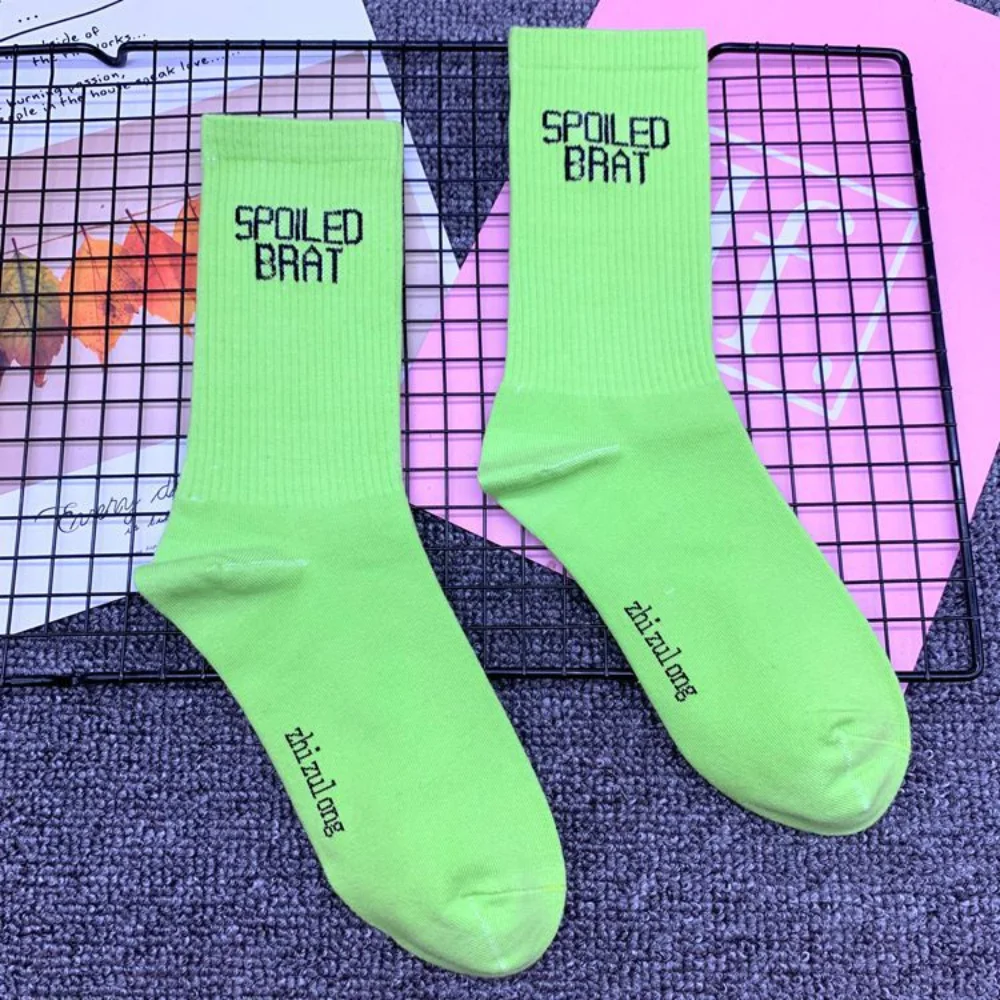 New Spoiled Brat Bright Colors Fashion Stretch Street Young Socks 8 Colors Neon Navy Purple White Yellow Unisex Socks
