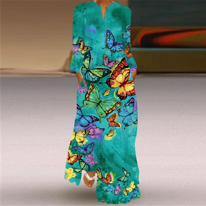 New Spring Black Long Dress Beach Casual Holiday 3D Butterfly Print Dresses Party Elegant Loose Long Sleeve Dress Vintage