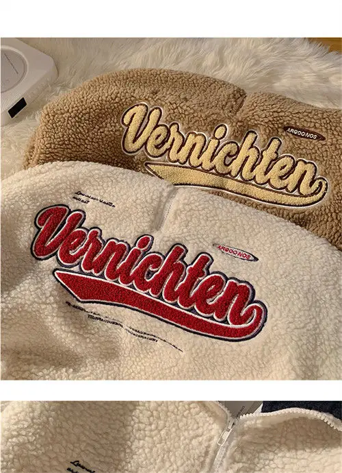New Vintage Punk Style Streetwear Chic V-neck Letter Embroidery Sweatshirt Women Baseball Oversized Harajuku lambswool coats ins