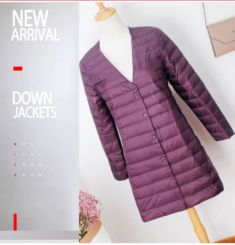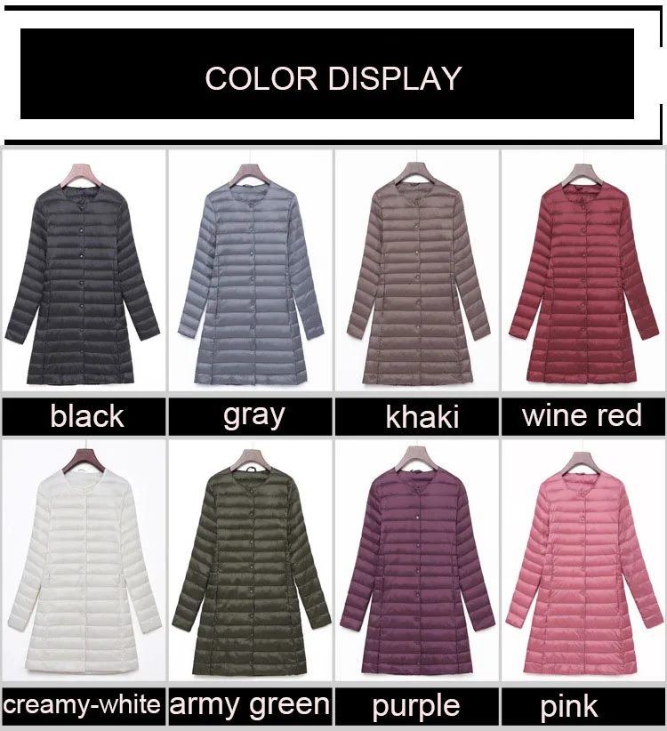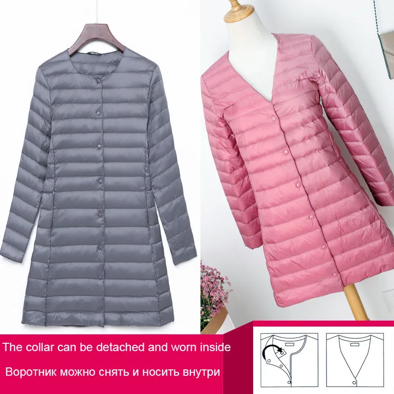 New Winter Coat Women Long Down Jacket White Duck Down Female Overcoat Ultra Light Slim Solid Thin Jackets Coat Portable Parkas